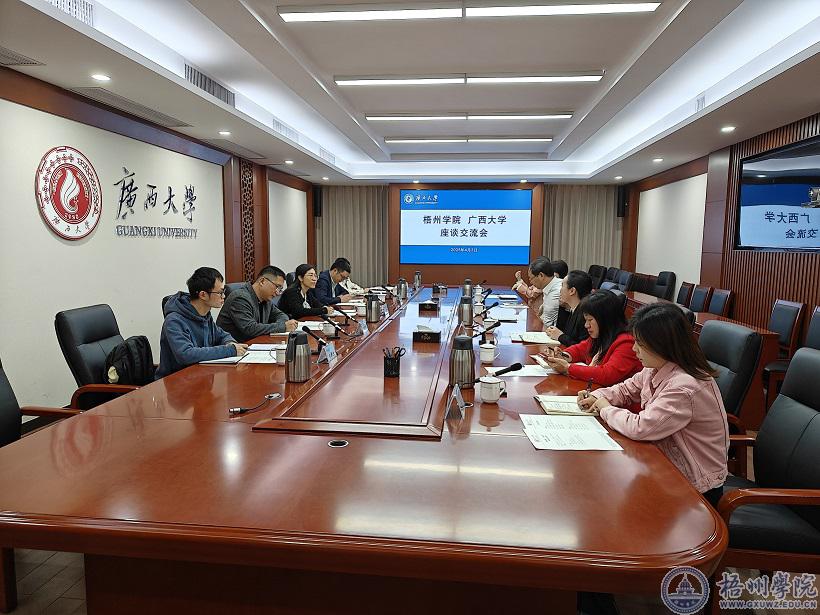 为深入学习广西大学人事领域综合改革的先进经验,推动广西大学对口支援梧州学院工作持续走实走深,4月3日,学校党委常委、副校长莫晨宇带队赴广西大学交流。广西大学党委常委、副校长于文进会见莫晨宇副校长一行,广西大学党委教师工作部部长、人力资源处处长申佩弘等参加交流会。