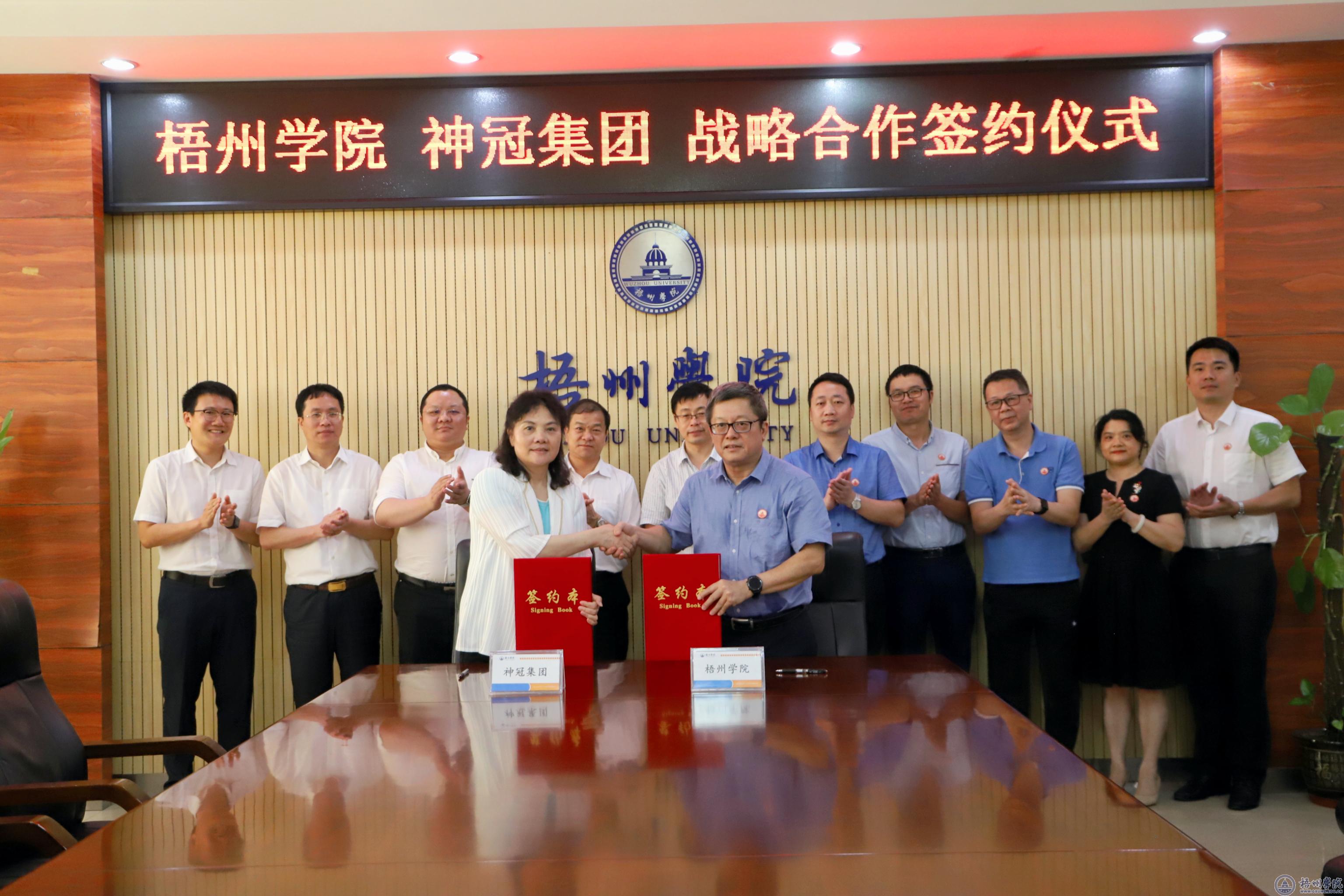 火热六月迎喜讯,校企携手谋发展。6月16日下午,学校与神冠集团战略合作协议签订仪式在明理楼八楼第二会议室举行。学校校长杨奔与神冠集团党委书记、董事长周亚仙分别代表校企双方签署战略合作框架协议,共同开启全面合作新篇章。神冠集团党委副书记、常务副总裁温锦培,学校副校长宾月景见证双方签约。