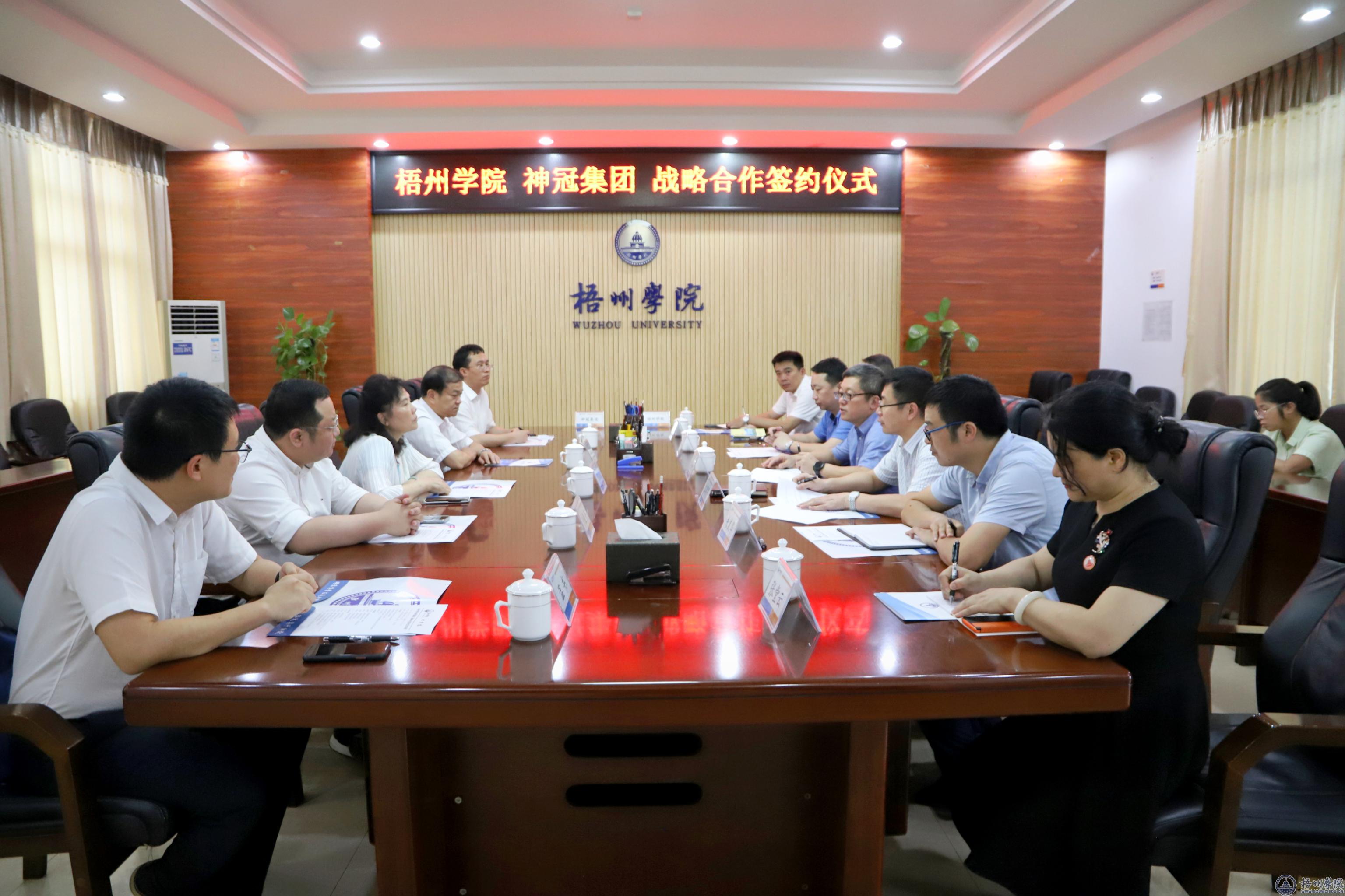 神冠集团副总裁沙俊奇、副总经理李成林、总经理助理温书,学校办公室、学生工作部(处)、发展规划处、管理学院、机械与资源工程学院有关负责人参加活动。