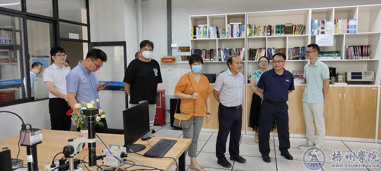 韦宁副主席一行先后参观了我校西江水情大数据平台、广西机器视觉与智能控制重点实验室、网络安全中心等平台,企业方希望能在学生就业实习、应用型人才培养、产学研合作、科研项目和平台申报等方面与梧州学院建立校企合作。