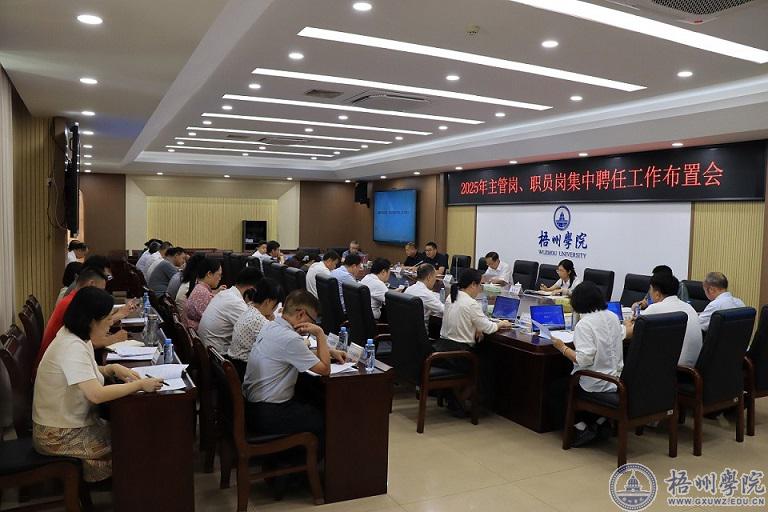 6月23日下午,学校在明理楼八楼第一会议室召开召开2025年主管岗、职员岗集中聘任工作布置会。学校党委常委、副书记梁业华,党委常委、副校长莫晨宇出席会议。学校各二级单位主要负责人、人事处相关科室人员参加了会议。