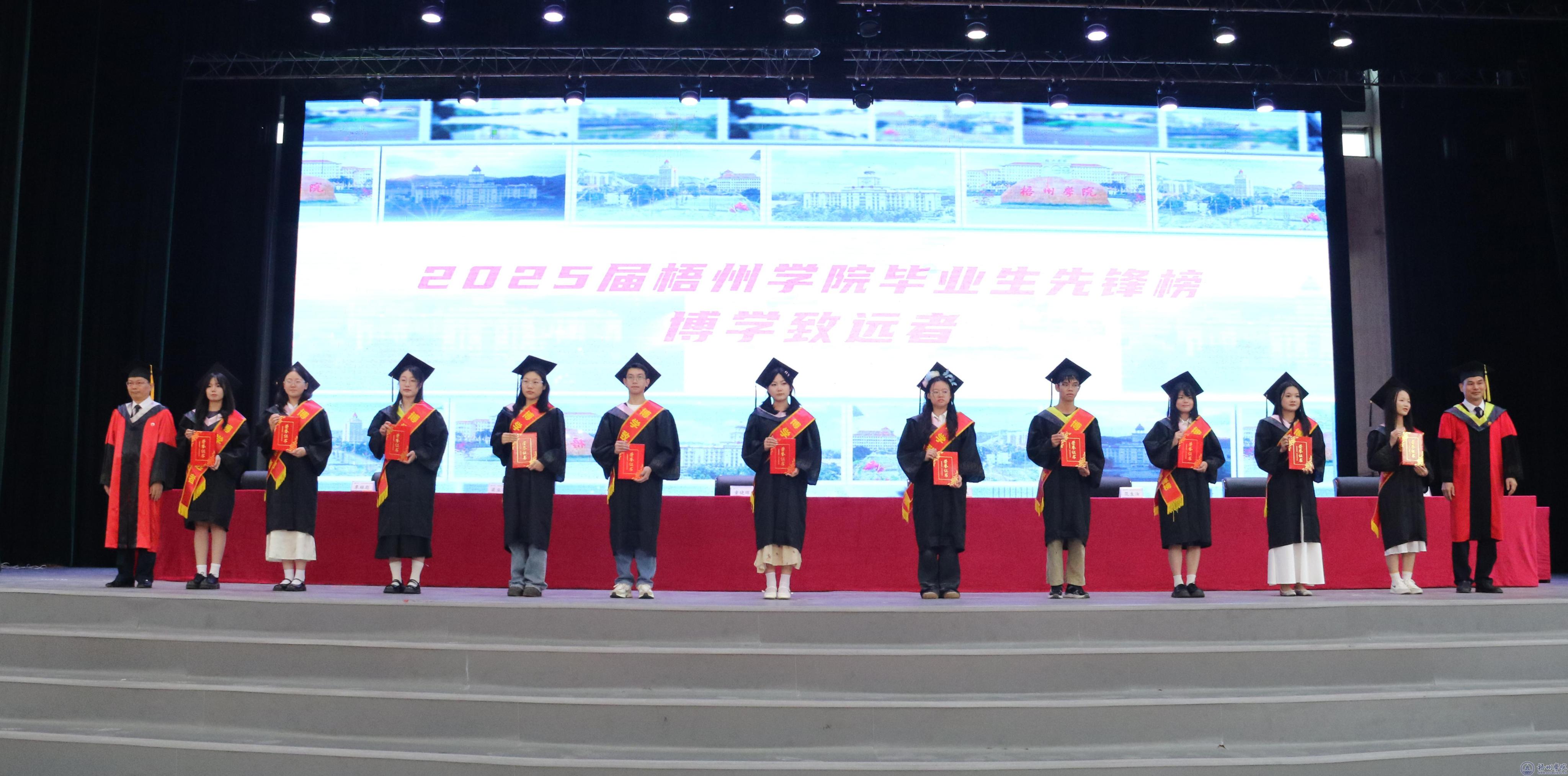 典礼现场,在校师生代表、辅导员代表、梧州校友会代表、毕业生代表深情演绎了《岁月神偷》《篇章》《入海》《你是》《再见》等曲目,用深情动人的歌声话别校园岁月,以昂扬奋进的旋律并肩共赴星辰大海。