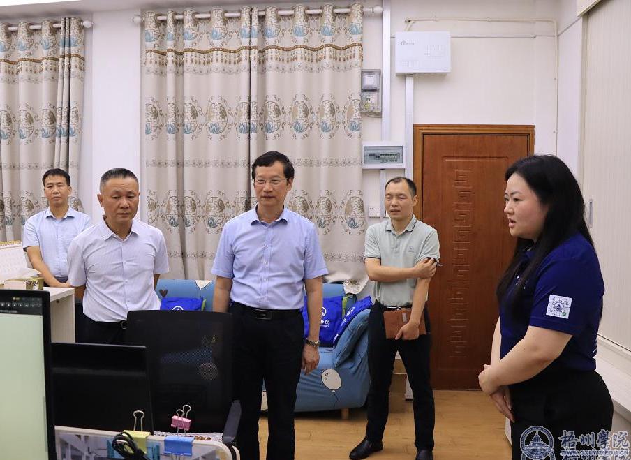 为切实做好2025年普高招生工作,确保招生录取工作规范、有序、高效开展,7月2日下午,麻新纯校长前往教务处招生办公室,深入检查普高招生录取现场的准备工作情况。副校长覃雄彪,党委(校长)办公室、教务处负责人随行检查。