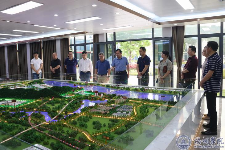 5月20日下午,学校校长杨奔带队到梧州建筑新材料科技产业园开展访企拓岗调研,洽谈校企合作。副校长宾月景、范生汝,梧州市园区新材料科技发展有限公司负责人阮汝国参加调研。 调研组一行参观听取了产业园区规划沙盘介绍,观看产业园宣传片。双方在园区项目指挥部会议室进行座谈交流。阮汝国介绍了产业园项目建设推进、园区规划、产业布局等基本情况和遇到的问题,希望能在技能型人才、产学研、吸引高层次人才、优化人员结构等方面与梧州学院建立校企合作。杨奔对园区公司的接待表示感谢,介绍了我校的办学历史、学科专业设置和应用型人才培养等情况,表示双方合作空间广阔,希望能够优势互补,借助上海电气等知名企业为我校人才培养带来新理念、新活力,拓宽我校毕业生就业途径,适应园区人才需求,促进共同发展。