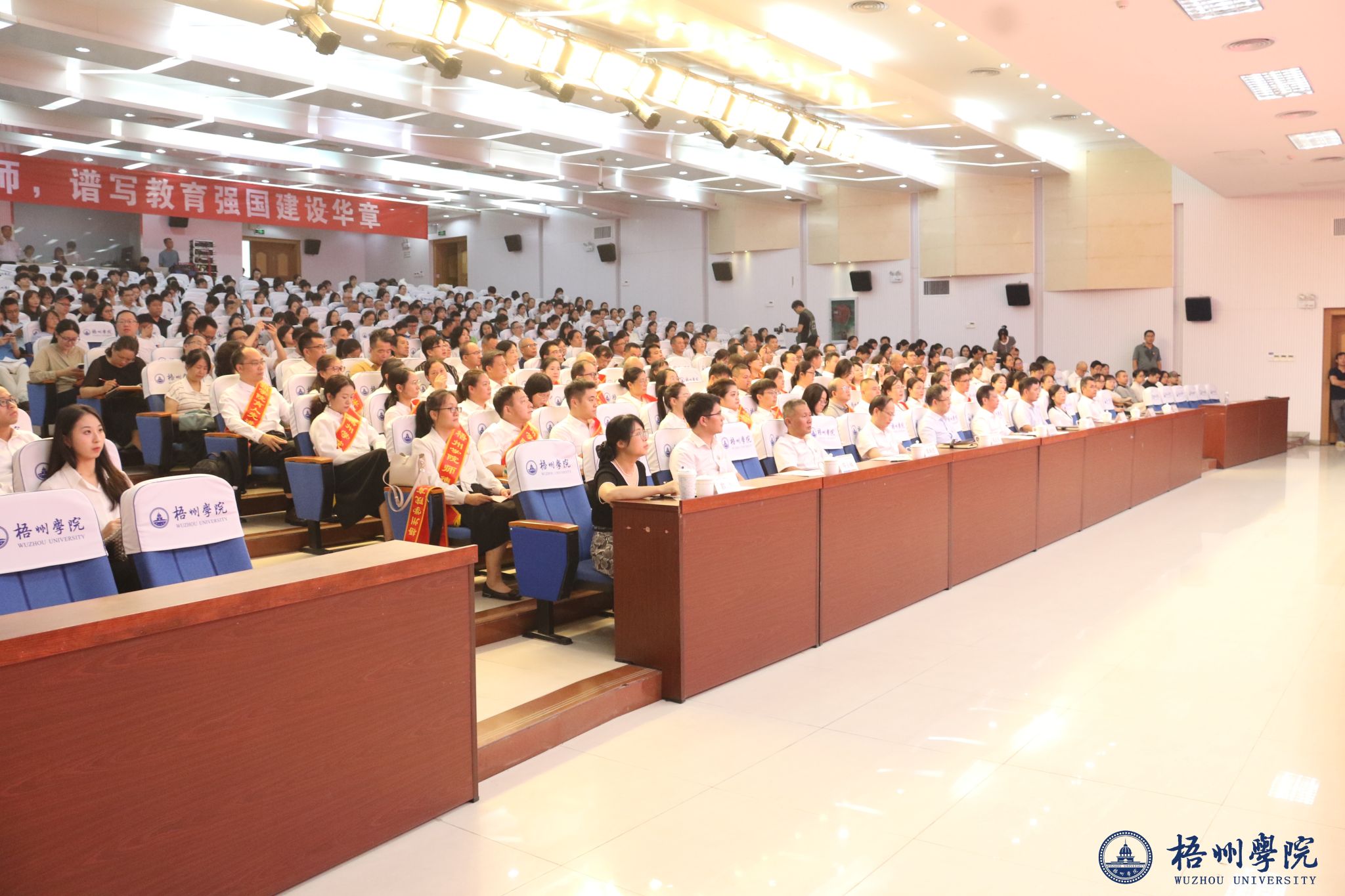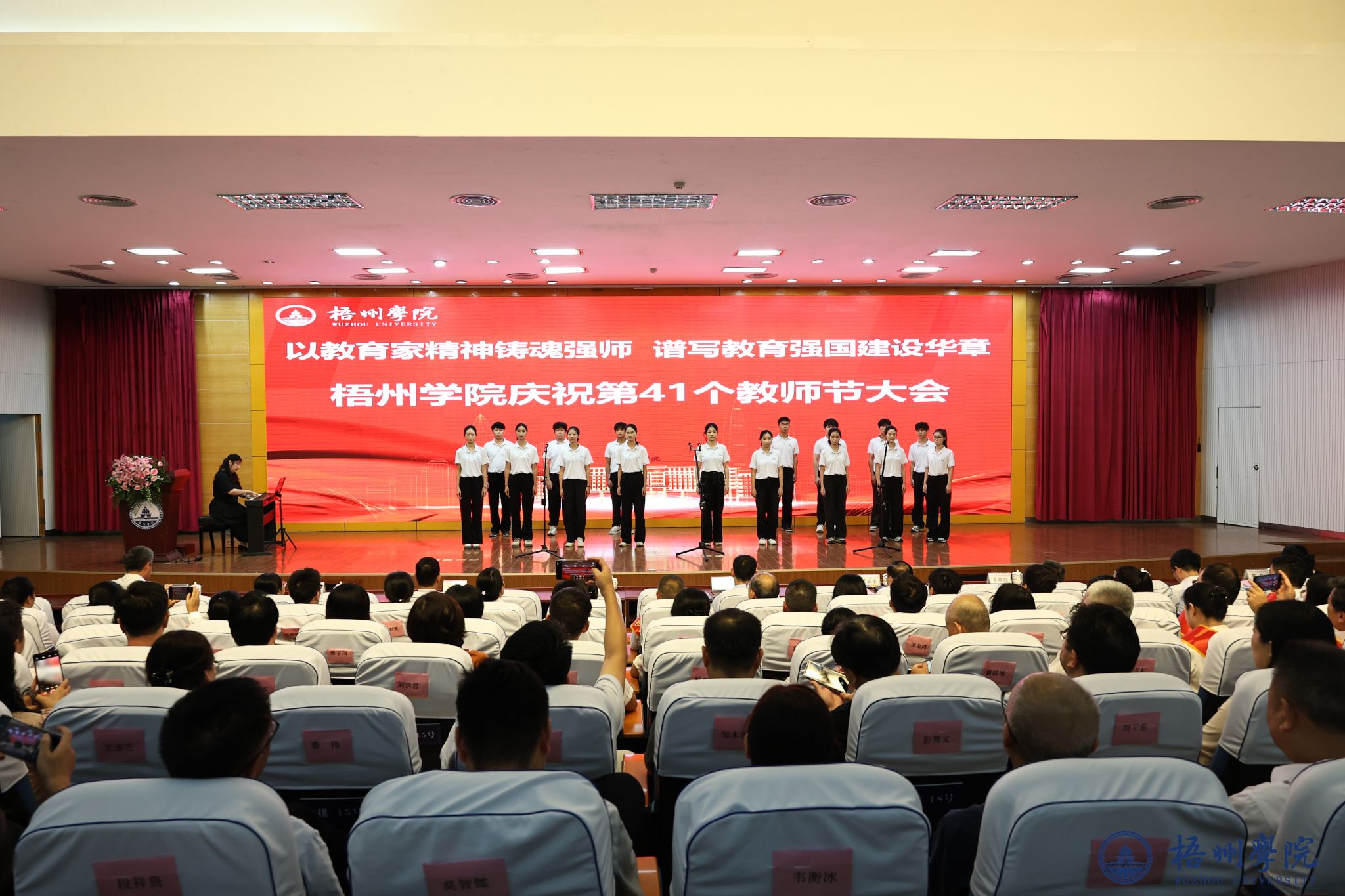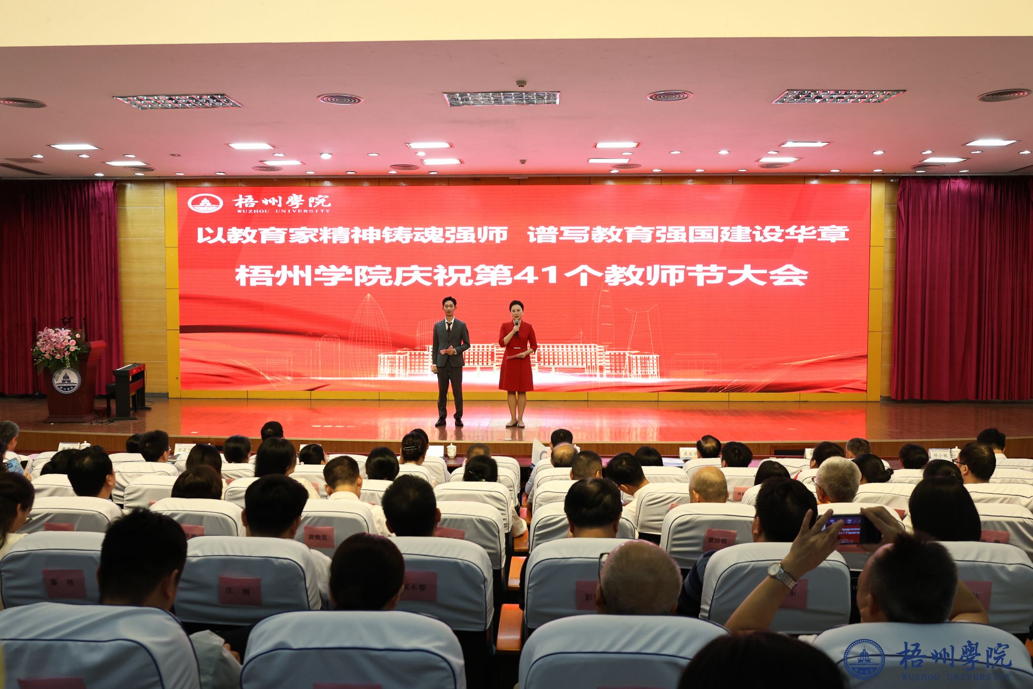 9月10日下午,学校在明理楼一楼学术报告厅举行主题为“以教育家精神铸魂强师,谱写教育强国建设华章”的第41个教师节大会暨师德报告会。学校领导童晓晖、麻新纯、梁业华、范生汝、覃雄彪、莫晨宇、邓小林出席活动。2025年光荣退休教职工代表,2025年新入职教师,2025年度师德标兵、育人先进个人、育人先进团队,以及学校各单位各部门负责人、全校各岗位主管,学生代表参加活动。
