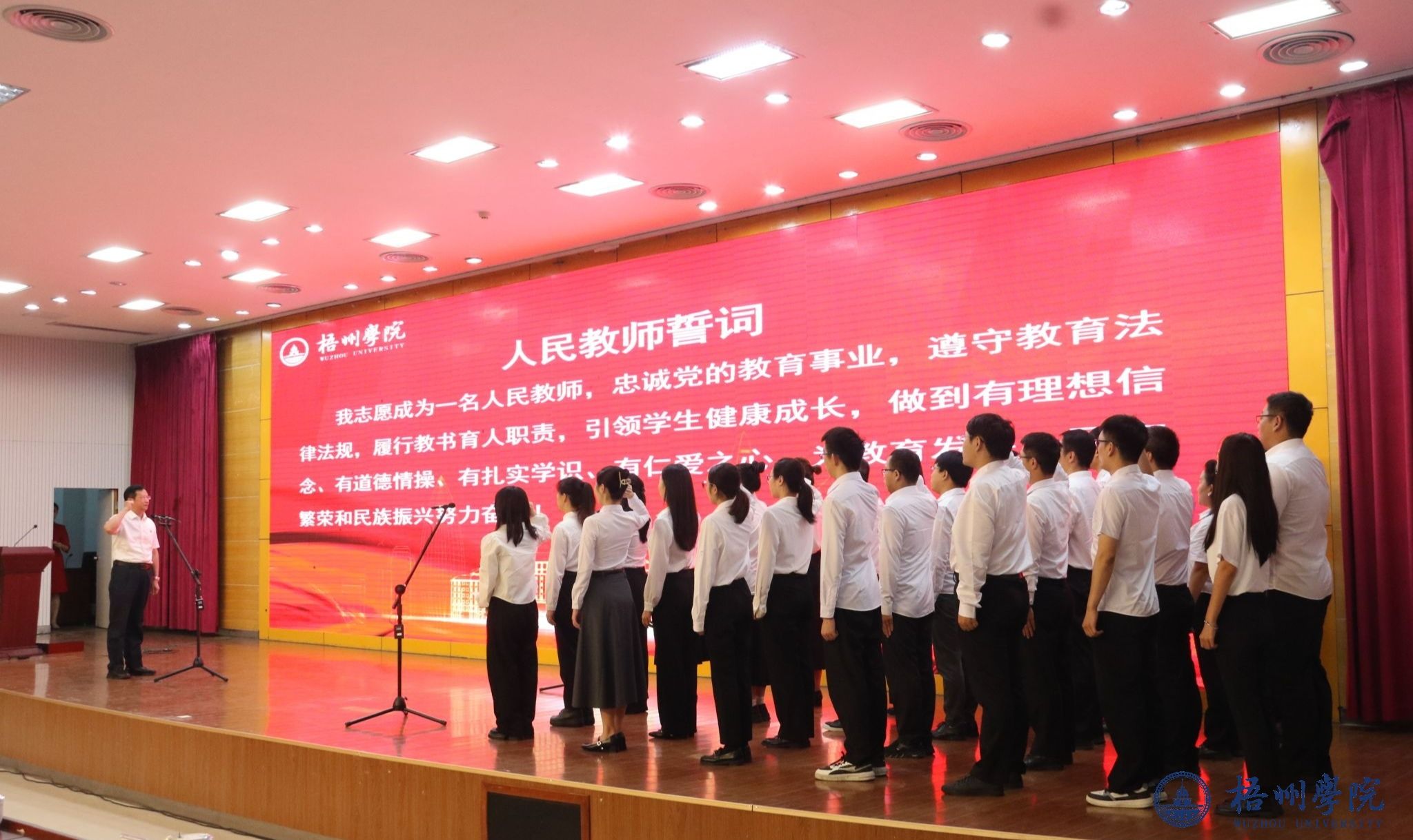 在校长麻新纯的带领下,举行了新入职教师入宣誓仪式,新入职教师们紧握右拳,庄严宣誓,誓言铿锵,展现的是信念与担当。