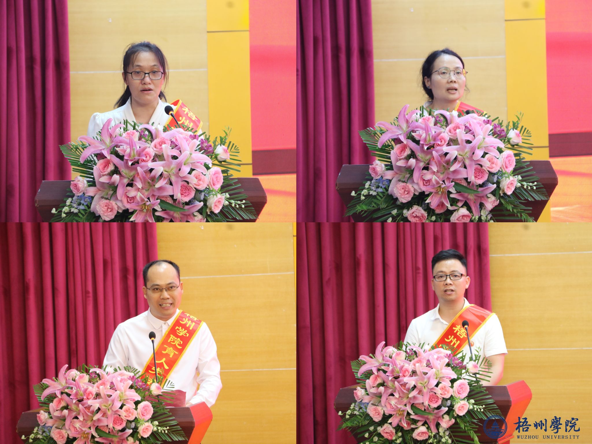 在师德报告会上,机械与资源工程学院申毅莉作为“师德标兵”代表,结合自身十余年的教学科研经历,分享了“以科研反哺教学、以爱心呵护学生”的育人故事,表达了坚守教育初心、深耕专业领域的坚定决心。经济学院詹小颖从个人职业发展、学生思想引领、人生价值实现三个维度,讲述了扎根学生工作一线的暖心感悟。文学与传媒学院潘家猛作为“育人先进团队”代表,详细介绍了哲学专业在考研指导中形成的“分层培养、精准帮扶、全程跟进”特色模式及显著成效。科研处庞光垚代表团队汇报了“西江复杂环境下航运智能化关键技术研发及应用”项目从理论攻坚到成果转化的艰辛历程,展现了科研团队服务地方经济发展的责任担当。