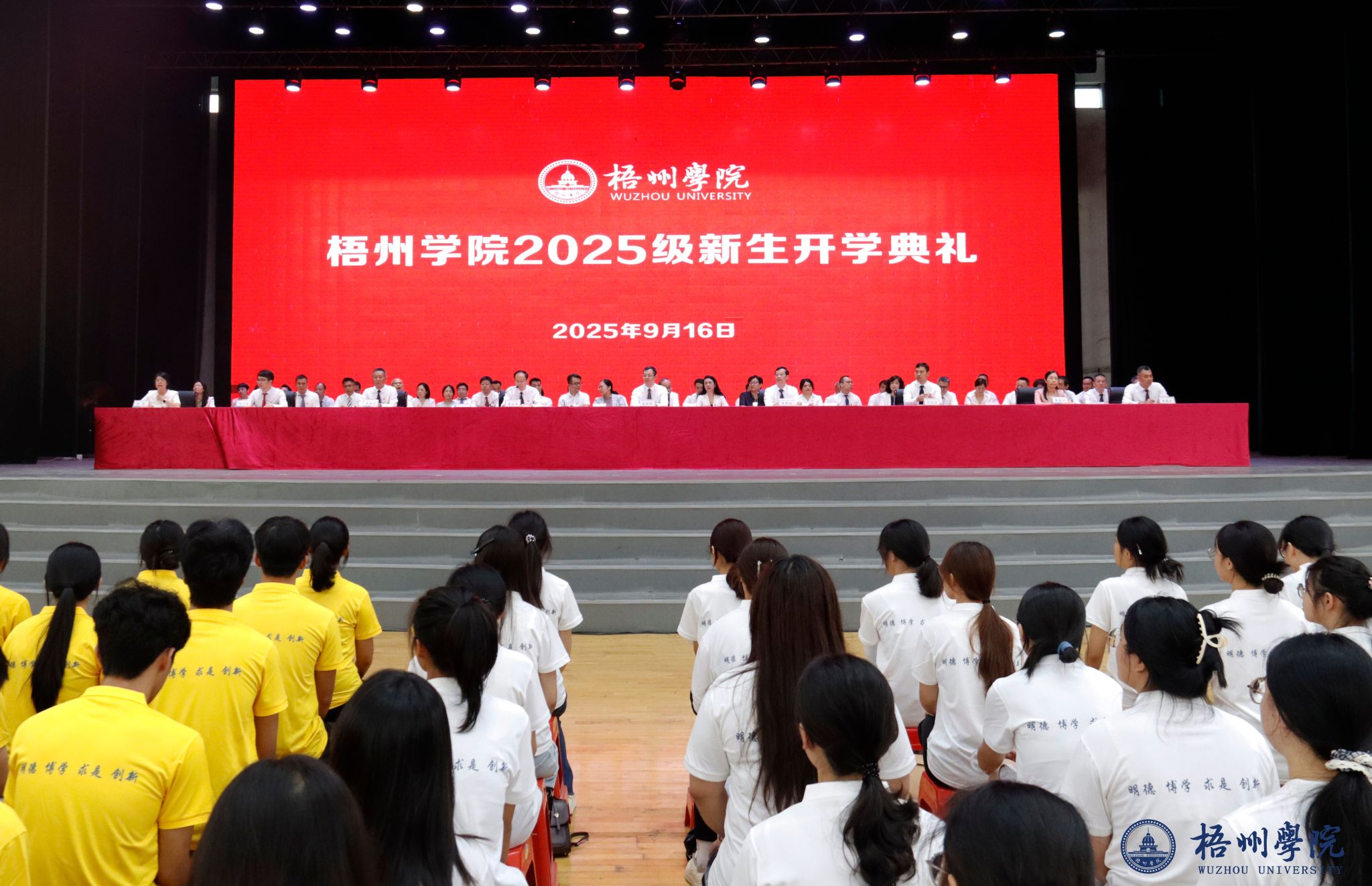 9月16日上午,学校在体育馆三楼举行2025级新生开学典礼。来自全国五湖四海的4894位同学相聚梧院,共启新程。学校党委书记童晓晖,校长麻新纯,党委副书记梁业华,副校长范生汝、覃雄彪、莫晨宇、邓小林出席典礼。学校各党政管理机构、群团组织、教辅单位主要负责人;各二级学院党委书记、院长、副书记、团委书记、2025 级新生辅导员、班主任、家长代表、教师代表、校友代表,以及2025级全体新生参加典礼。典礼由学校党委副书记梁业华主持。
