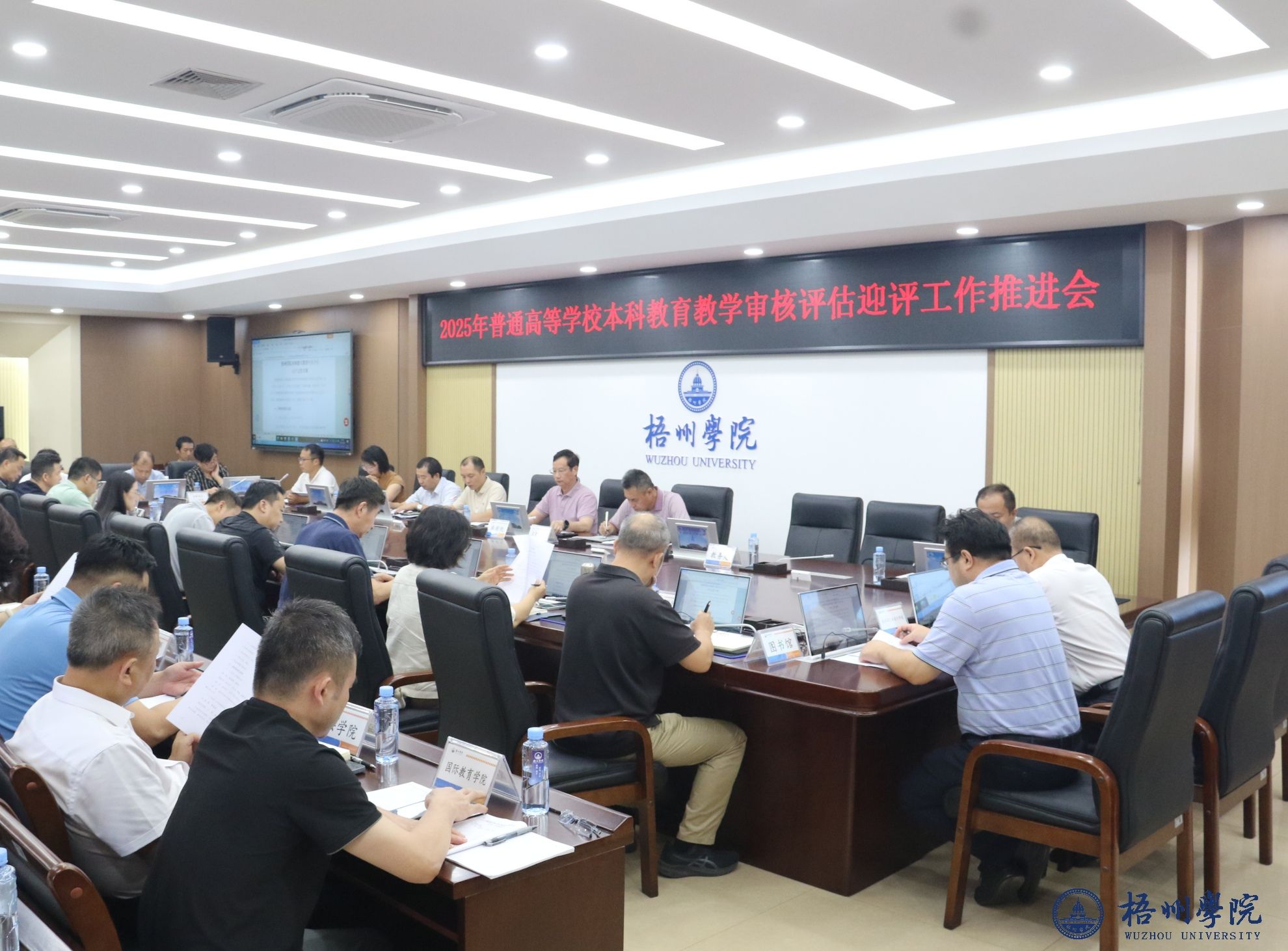 凝心聚力备评估,提质增效促发展。近日,学校召开2025年普通高等学校本科教育教学审核评估迎评工作推进会,全面部署评估准备工作,吹响高质量迎评攻坚号角。全校各职能部门正职及二级学院党政负责人参会,校长麻新纯主持会议。