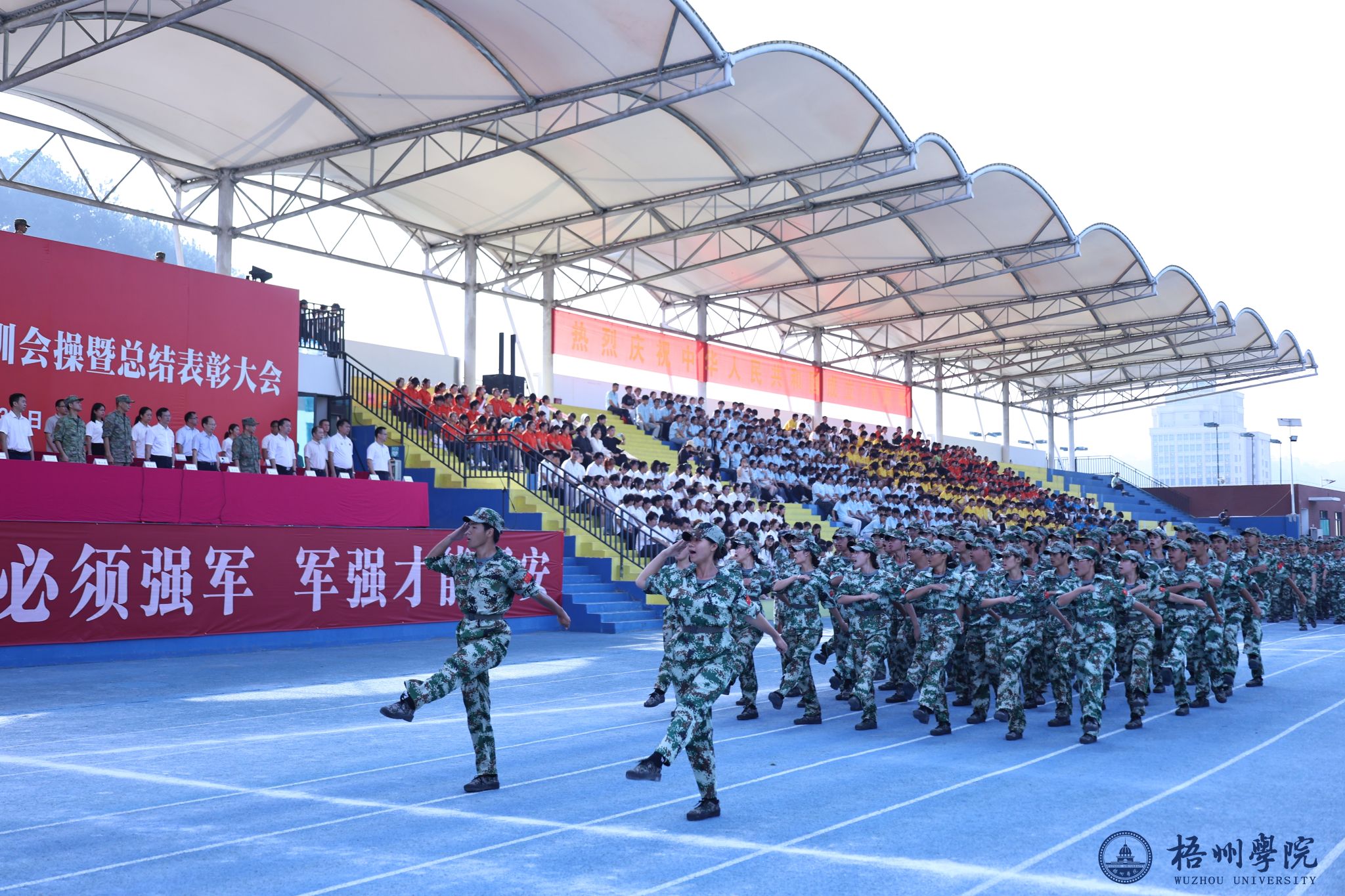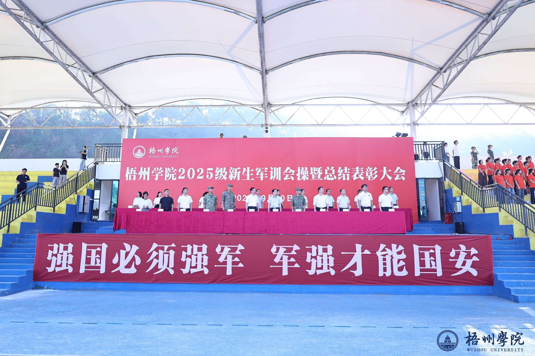 9月30日上午,学校在北片区田径场举行学校2025级新生军训会操暨总结表彰大会。学校党委副书记、校长麻新纯,党委副书记梁业华,梧州军分区战备建设处上校、处长曾庆文,万秀区人民武装上校、政治委员廖克武出席大会。学校2025级新生军训工作领导小组成员,全体2025级新生辅导员,班主任,2025级全体新生参加大会。