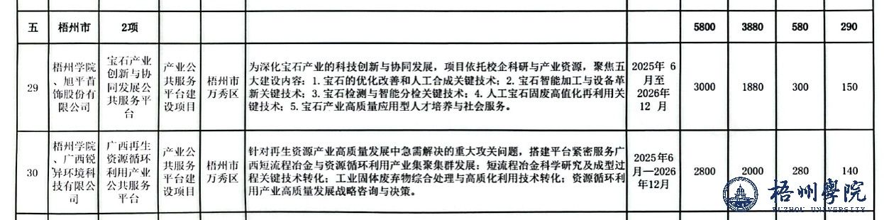 近日,自治区工业和信息化厅及自治区财政厅下达《2025年自治区统筹支持工业振兴专项资金(第二批先进制造业集群培育)项目计划的通知》,我校“宝石产业创新与协同发展公共服务平台”“广西再生资源循环利用产业公共服务平台”喜获立项。
