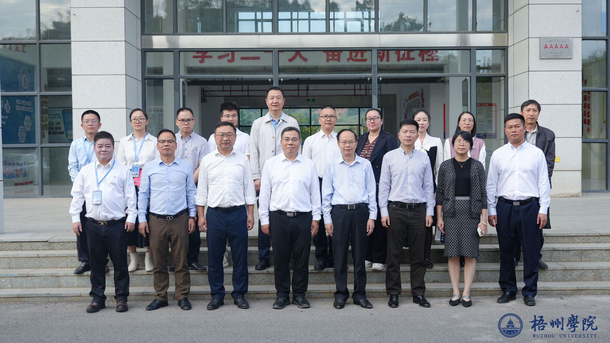 梁业华指出,结对共建是贯彻落实自治区党委教育工委关于公办高校与民办高校党建和思想政治工作结对共建的部署要求,既是政治任务,更是发展机遇。他以“环境美、条件优、情怀深、成效显”充分肯定梧州医专的办学基础,介绍了梧州学院在党建创新、人工智能、就业服务等方面服务地方发展的成果。并就共建工作提出四点希望:相互学习,促进优势互补;同题共答,协同破解难题;共同进步,推动党建与业务融合;共享成果,形成可推广的典型经验。
