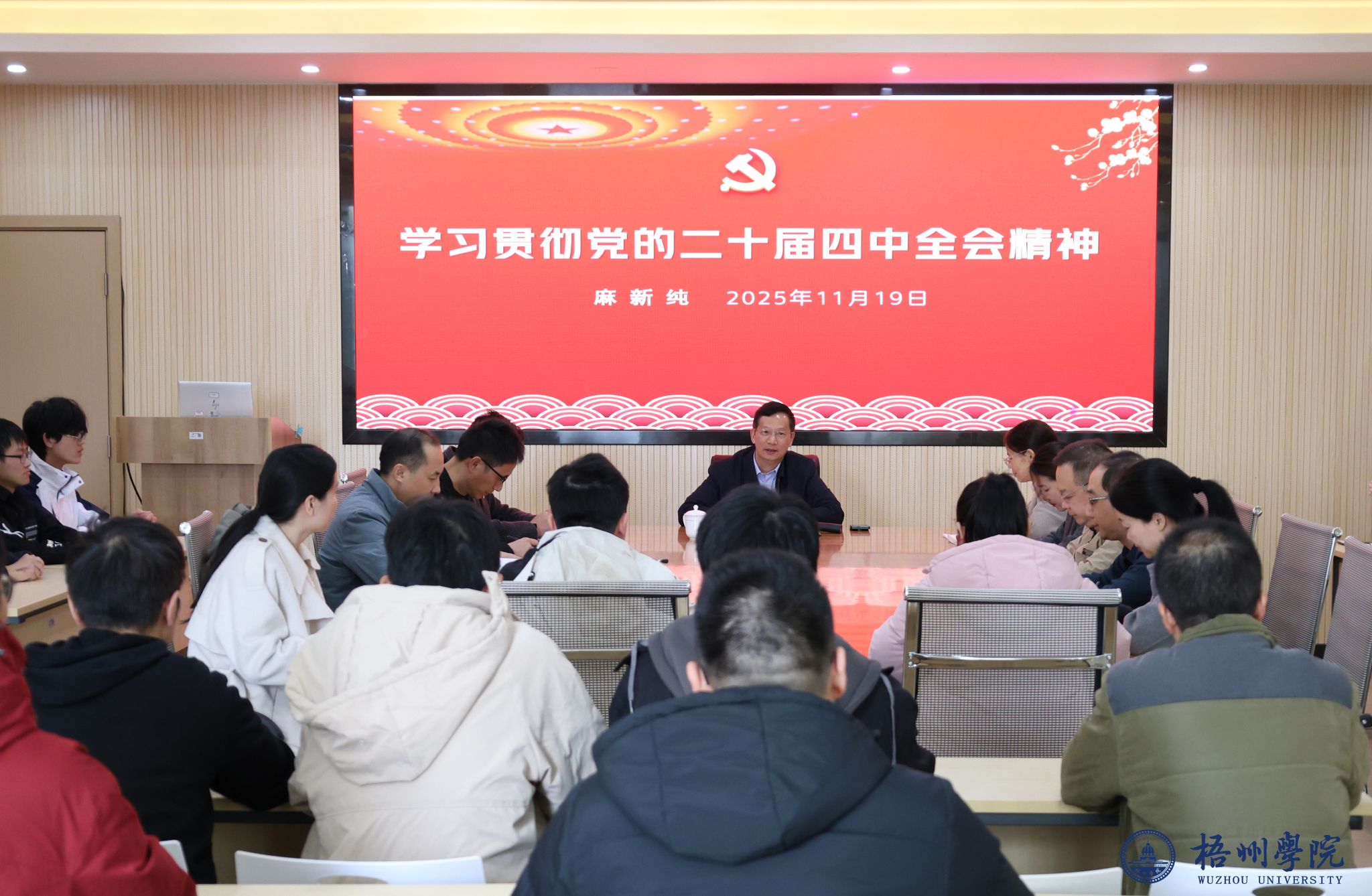 11月19日下午,学校校长麻新纯在明科楼K902会议室为电子信息与人工智能学院师生代表作党的二十届四中全会精神专题宣讲。电子信息与人工智能学院党政领导班子成员、师生代表参加学习。