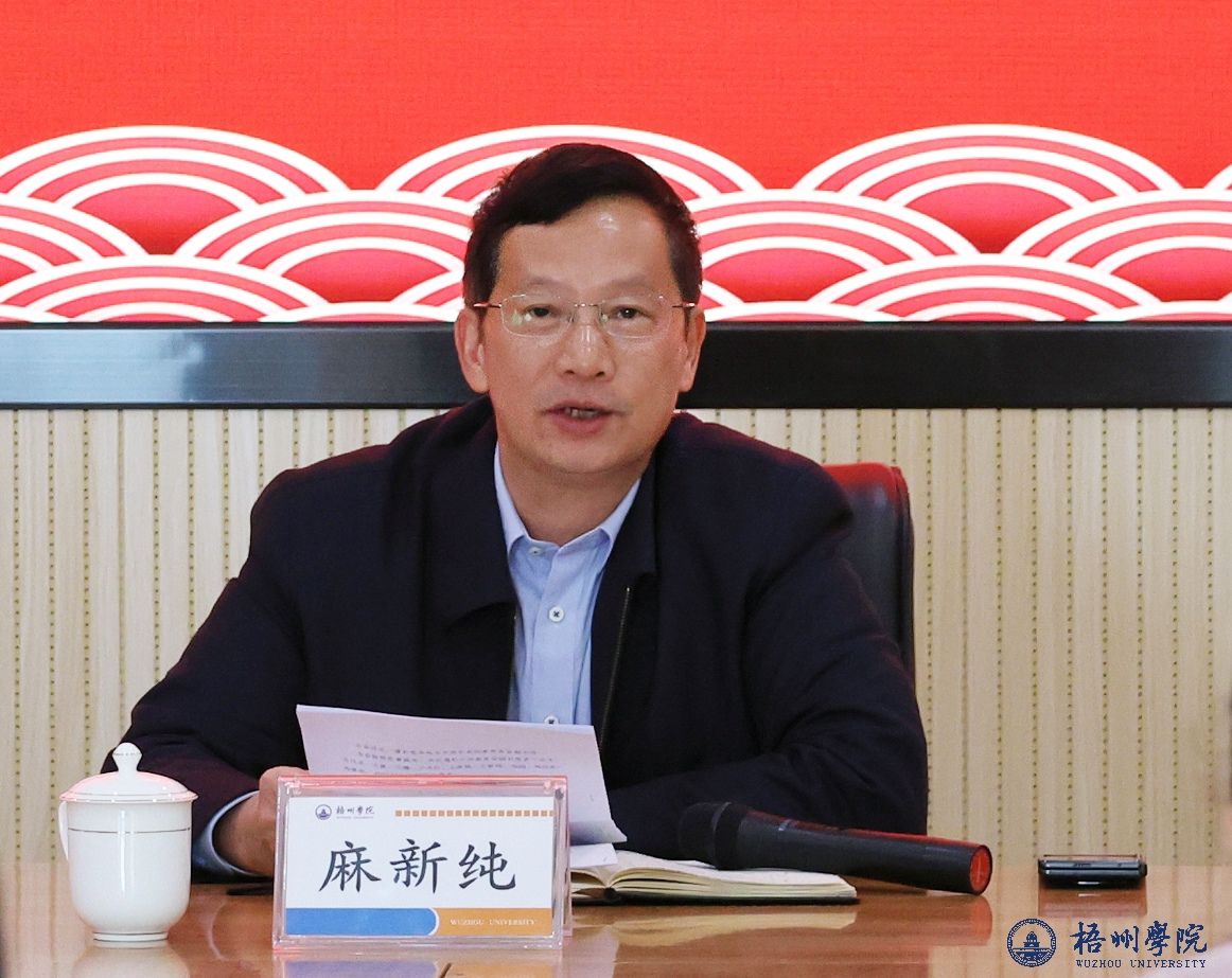 麻新纯校长紧扣全会精神核心要义,结合学校发展实际,从“把握发展机遇、强化使命担当、深化教育改革、服务区域战略”四个维度展开阐述。他指出,党的二十届四中全会为高等教育高质量发展指明了方向,全校上下要以全会精神为指引,锚定“升格梧州大学”目标,抢抓机遇、攻坚克难,推动学校内涵式发展。麻新纯强调,电子信息与人工智能学院要充分发挥学科优势,以科技创新赋能产业升级,以产教融合服务地方发展。他提出三点要求:一是优化学科布局:聚焦智能装备、大数据、智能制造等领域,打造区域特色学科品牌;二是深化教学改革:提高教材与教学内容匹配度,强化实践教学环节,提升学生创新能力;三是突破人才瓶颈:完善高层次人才引进与培养机制,推动教师跨学科发展,防范职业发展“天花板”。麻新纯要求全院师生以“时不我待”的紧迫感,聚焦关键核心技术攻关,加速成果转化;依托广西“东融”战略,深化与粤港澳大湾区、东盟的产学研合作,助力乡村振兴和数字广西建设;严守实验室安全、意识形态安全底线,压实安全管理责任。确保全会精神落地见效,为建设特色鲜明的高水平应用型大学贡献智慧和力量。