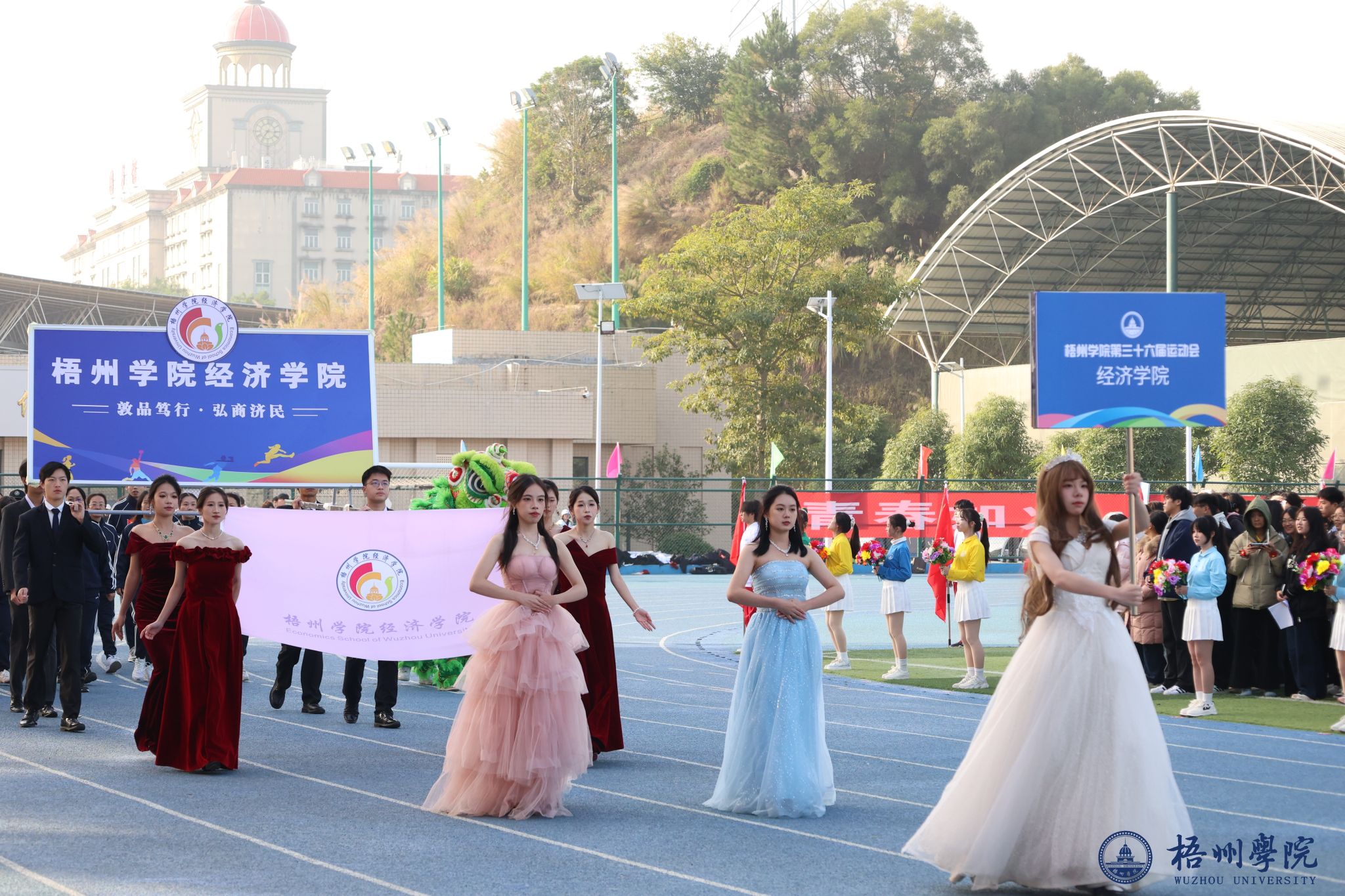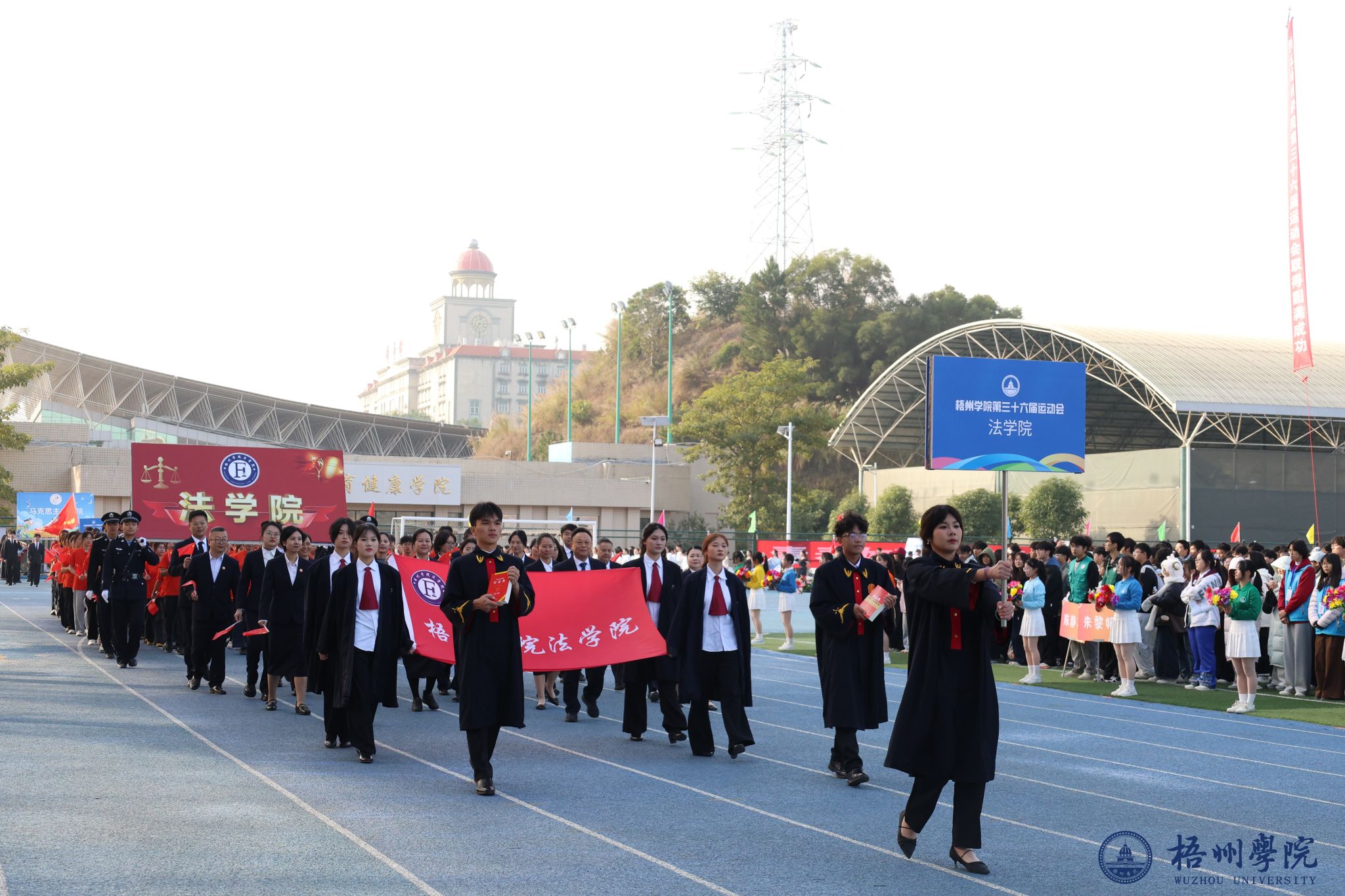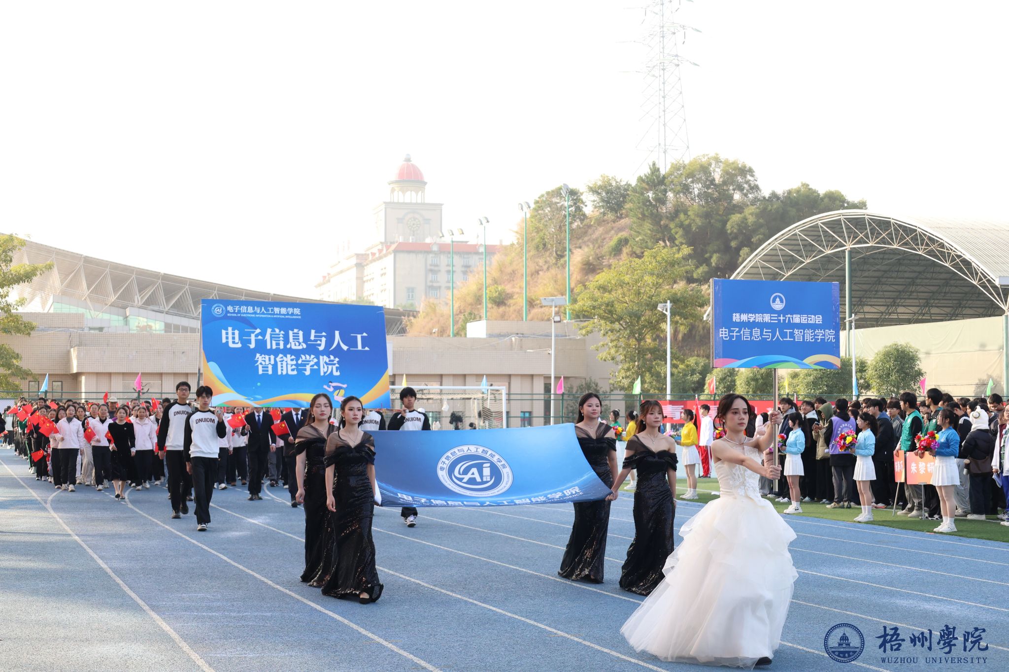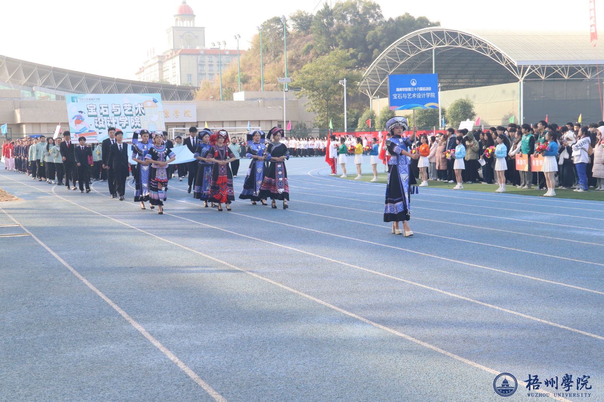随后,各学院方块队逐一亮相。管理学院方队尽显严谨务实作风,机械与资源工程学院方队展现工科专业特色,文学与传媒学院方队洋溢着人文气息,食品与制药工程学院方队传递健康理念,教师教育学院方队凸显育人情怀,宝石与艺术设计学院方队尽显创意活力,外国语学院方队展现国际视野,经济学院方队彰显进取精神,体育健康学院方队活力四射,法学院方队尽显严谨风范,马克思主义学院方队传递思想力量,电子信息与人工智能学院方队展现科技魅力。机关教职工方队展现出教职工的良好风貌,裁判员方队则以专业姿态亮相。各方块队的精彩表现,为第三十六届运动会开幕式画上了圆满的开篇,也激发了全体师生参与运动、奋勇拼搏的热情。