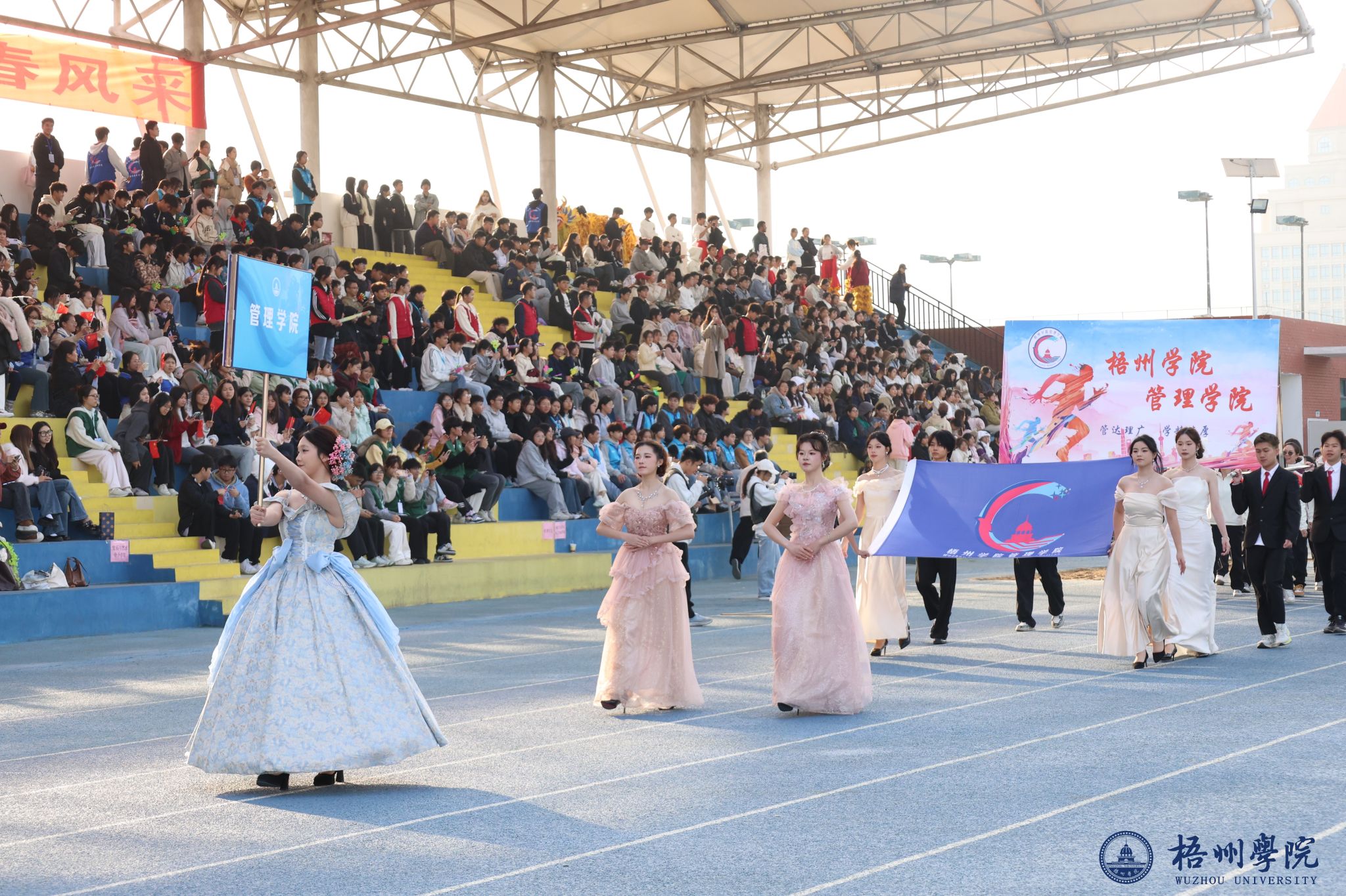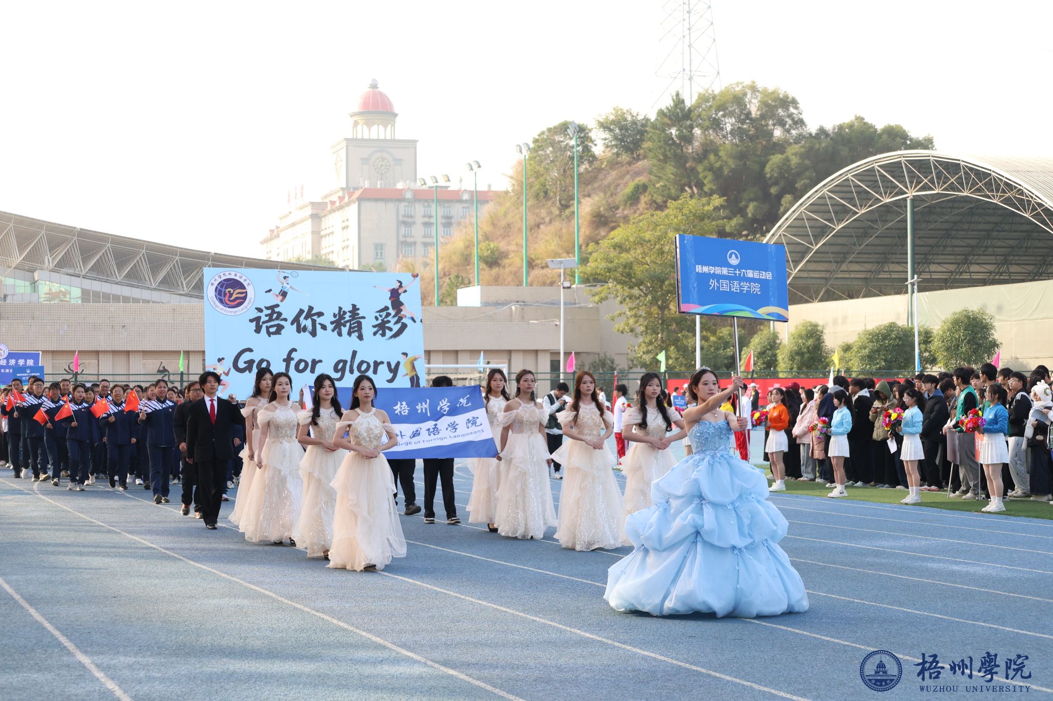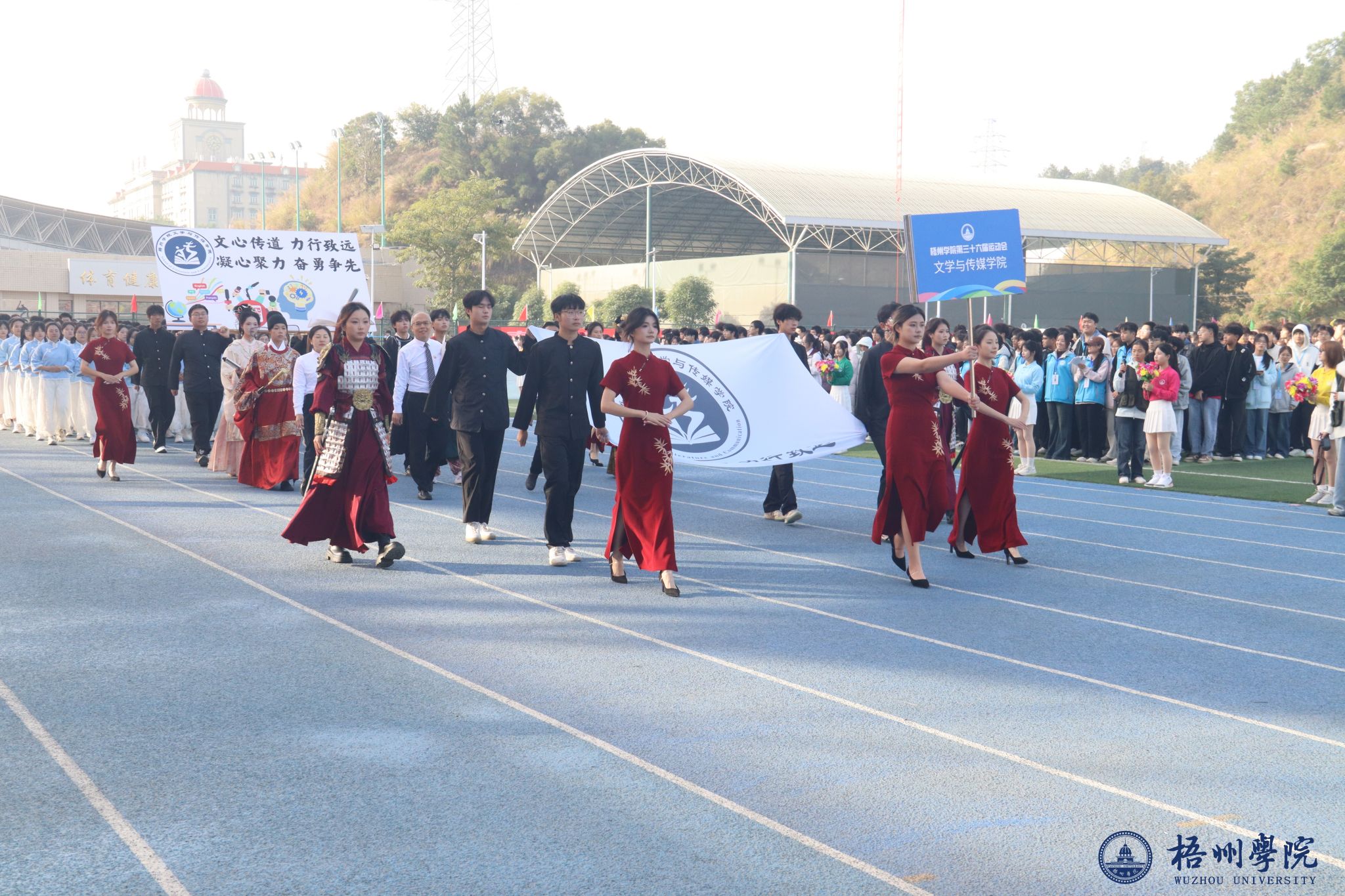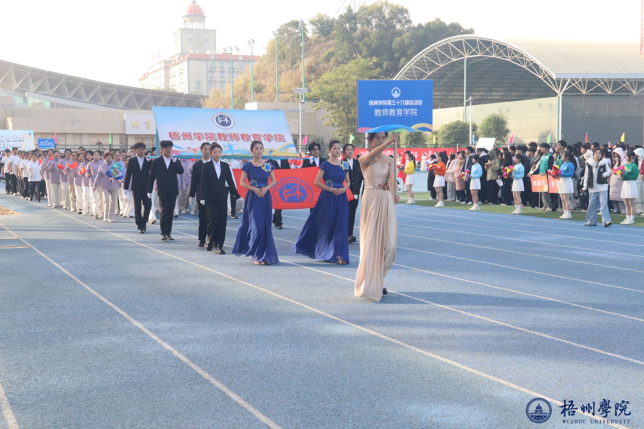 随后,各学院方块队逐一亮相。管理学院方队尽显严谨务实作风,机械与资源工程学院方队展现工科专业特色,文学与传媒学院方队洋溢着人文气息,食品与制药工程学院方队传递健康理念,教师教育学院方队凸显育人情怀,宝石与艺术设计学院方队尽显创意活力,外国语学院方队展现国际视野,经济学院方队彰显进取精神,体育健康学院方队活力四射,法学院方队尽显严谨风范,马克思主义学院方队传递思想力量,电子信息与人工智能学院方队展现科技魅力。机关教职工方队展现出教职工的良好风貌,裁判员方队则以专业姿态亮相。各方块队的精彩表现,为第三十六届运动会开幕式画上了圆满的开篇,也激发了全体师生参与运动、奋勇拼搏的热情。