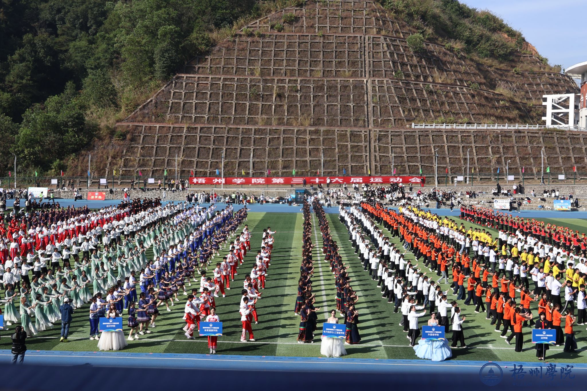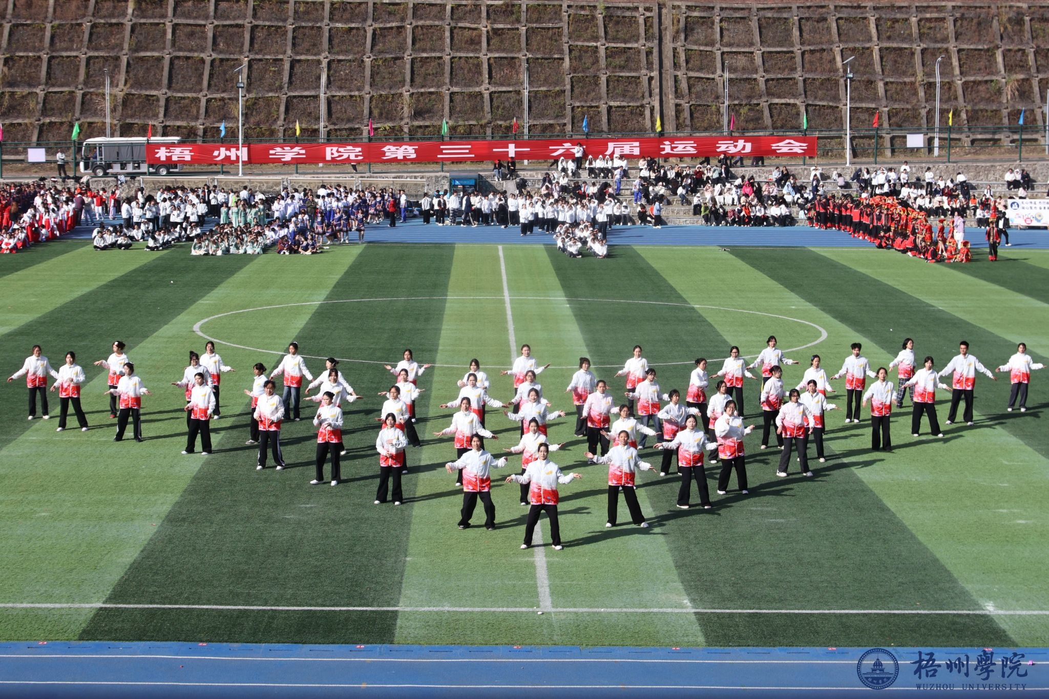 11月28日,我校第三十六届校运会开幕式在运动场隆重举行,12个二级学院的学子们表演了团体操(舞),并开展校园青春民族茶舞大赛角逐,用蓬勃活力与奇思妙想,为现场师生呈现了一场青春盛宴。各学院代表队身着色彩鲜明的统一服装依次登场,伴随着激昂的旋律,学子们动作舒展流畅、整齐划一。一张张青春的脸庞洋溢着自信笑容,一次次精准的配合彰显着团队默契。学子们用肢体语言传递着对运动的热爱,更用创意编排展现了各学院的独特魅力与校园文化的风采。