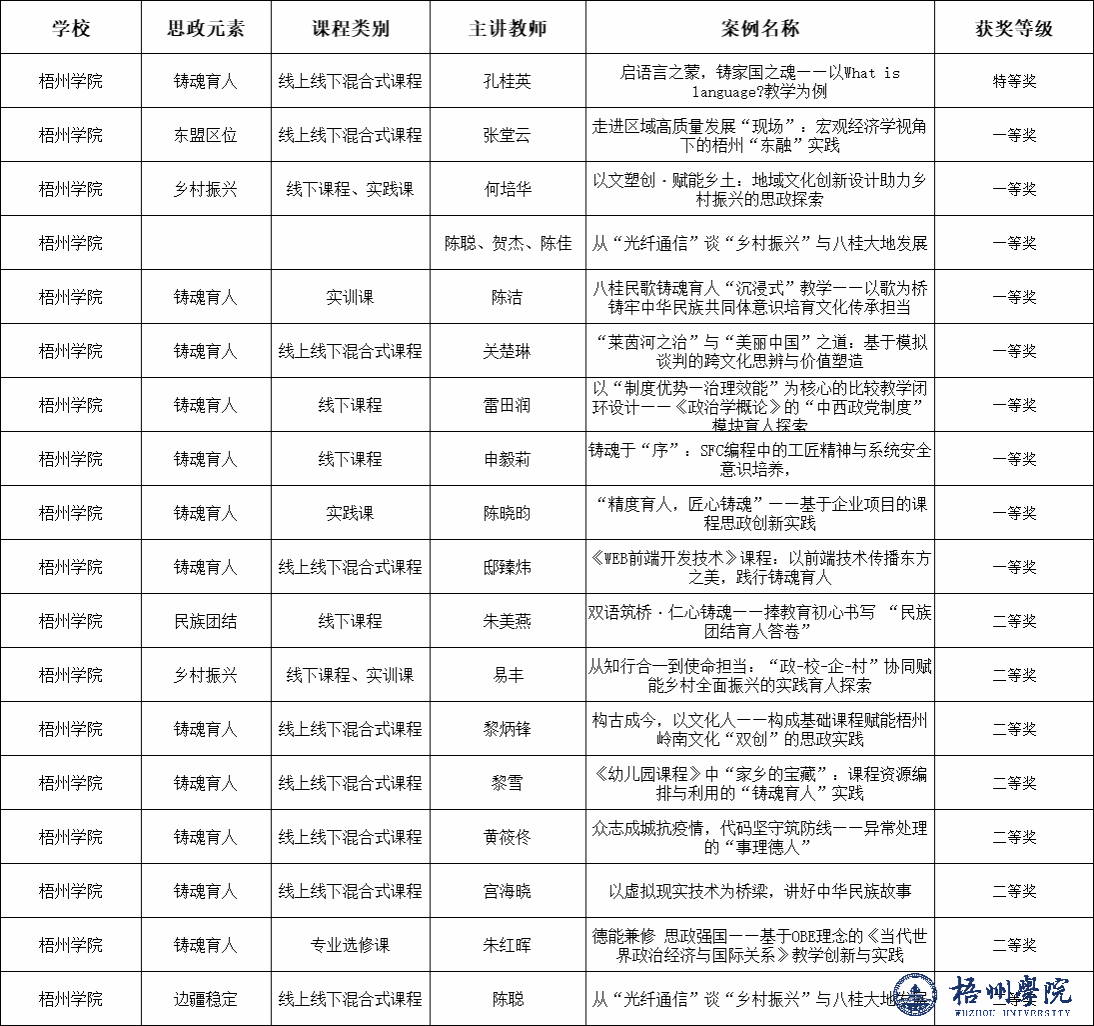 近日,八桂高校课程思政联盟公布了第一届课程思政优秀案例评选结果,我校共有18项获奖,其中特等奖1项、一等奖9项、二等奖8项,充分展现了我校在课程思政建设方面的扎实基础。
