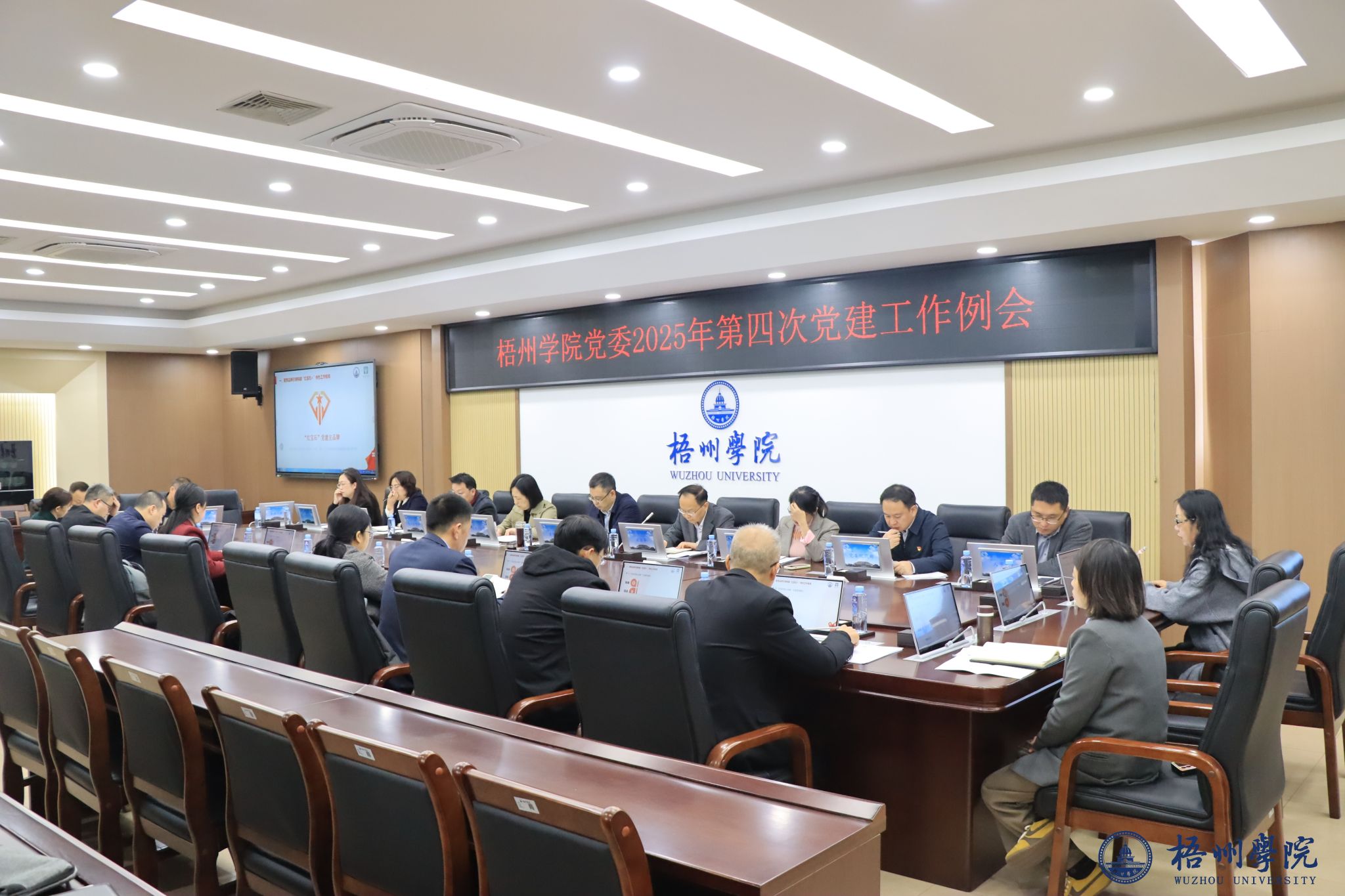 12月5日上午,梧州学院党委在明理楼八楼第一会议室召开2025年第四次党建工作例会。会议深入贯彻落实新时代党的建设总要求,梳理年度党建工作成效与特色亮点,系统谋划下一阶段重点任务,持续推动党建与学校中心工作深度融合。学校党委书记童晓晖,党委副书记梁业华,党委、纪委工作部门负责人,各二级学院党委(党总支)书记或副书记参加会议。会议由党委副书记梁业华主持。