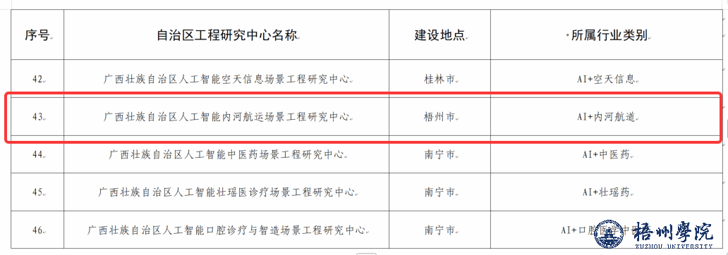 近日,自治区发展和改革委员会对2025年广西壮族自治区工程研究中心拟认定名单完成公示,我校联合广西西江开发投资集团有限公司和梧州水文中心申报的“广西壮族自治区人工智能内河航运场景工程研究中心”完成公示。该中心依托电子信息与人工智能学院等单位建设,对促进内河航运及相关产业的可持续发展具有重要意义,有望为广西乃至全国的内河航运转型升级提供强有力的技术支撑和示范效应,从而满足国家战略需求和我区产业发展的科学技术支撑要求。