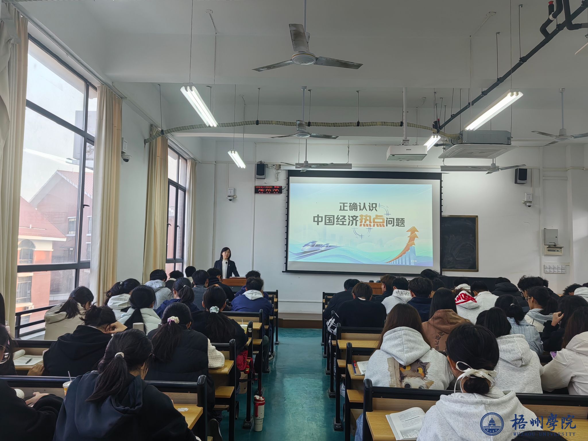 为深入学习贯彻习近平经济思想和党的二十届四中全会精神,落实立德树人根本任务,12月9日上午,副校长莫晨宇在北校区N405教室,以“正确认识中国经济热点问题”为题,为2025级本科生讲授了一堂生动深刻的思政课。
