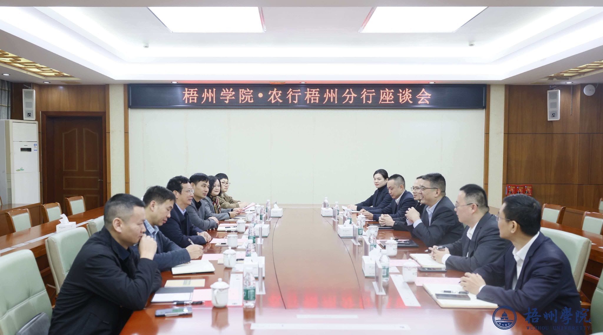 12月16日上午,校长麻新纯、副校长范生汝带领党(校)办、计划财务处、现代教育技术中心等部门负责同志,赴农业银行梧州分行交流。