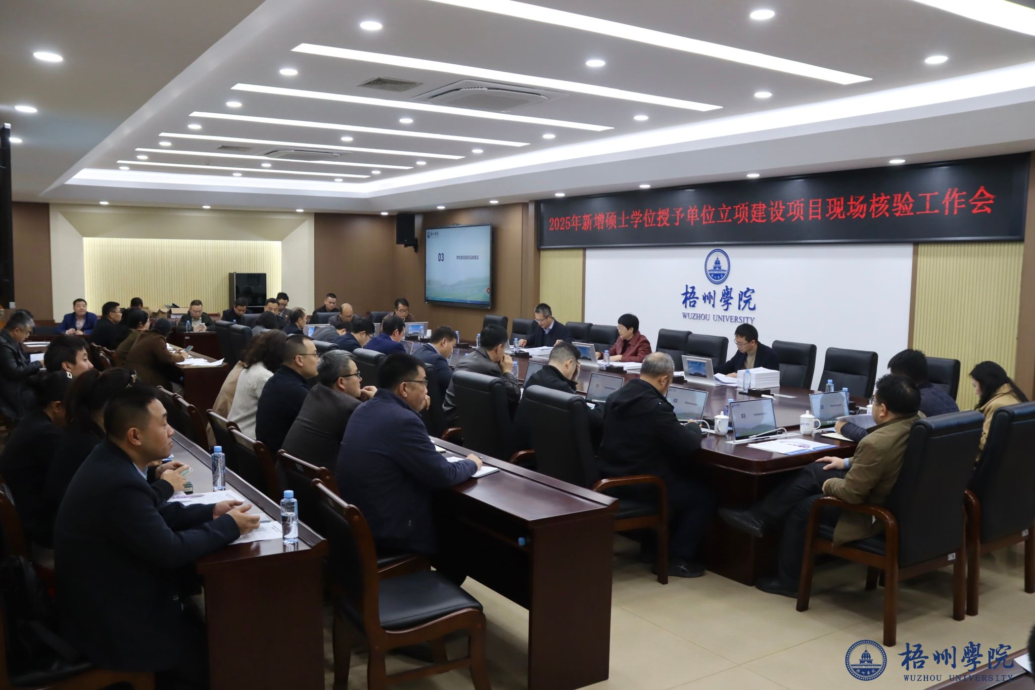 12月16日下午,以南宁师范大学研究生院院长盛家荣教授为组长,广西财经学院规划处处长王业斌教授、广西大学研究生院副院长陈宁江教授为成员的自治区教育厅专家组一行莅临我校,对我校2025年新增硕士学位授予单位立项建设工作进行全面、深入的现场核验。核验工作会议在明理楼八楼第一会议室举行,校长麻新纯、副校长邓小林及相关部门、学院负责人参加会议。会议由副校长邓小林主持。