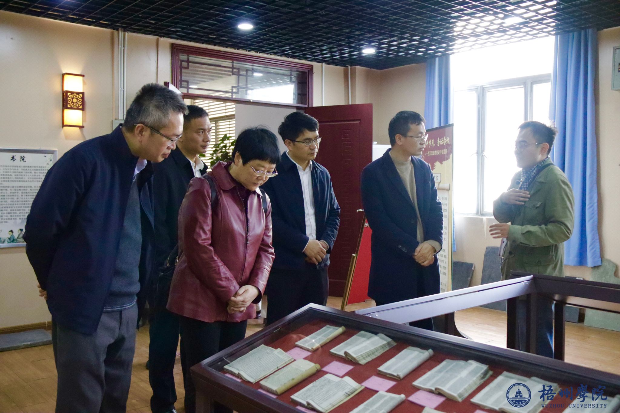 核验工作采取实地考察与集中汇报相结合的方式进行。专家组一行在校领导陪同下,实地走访广西智能显微设备技术创新中心、广西六堡茶科技成果转化中试研究基地、西江流域文献中心等学校教学科研平台与特色场馆,细致了解学校在智能装备、西江航运大数据等领域的科研进展、技术创新能力与特色学科的建设成果,更加直观了解学校“紧扣产业、突出特色”的建设思路。