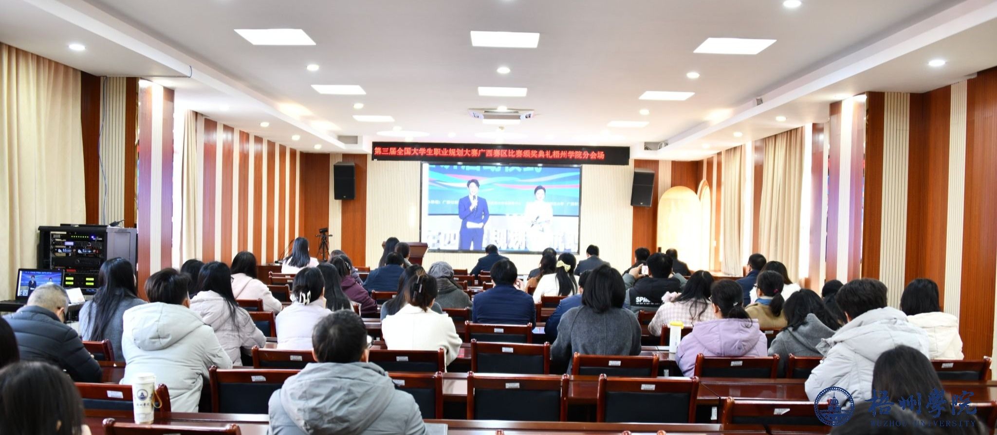 1月12日,自治区教育厅组织召开第三届全国大学生职业规划大赛广西赛区颁奖典礼暨基层就业代表宣讲启动仪式,我校在明理楼七楼视频会议室设立了分会场。学校党委副书记梁业华、学生工作部(处)、教务处、校团委相关负责人、各二级学院分管就业工作领导、就业指导课程教师及学生代表通过线上形式观看。