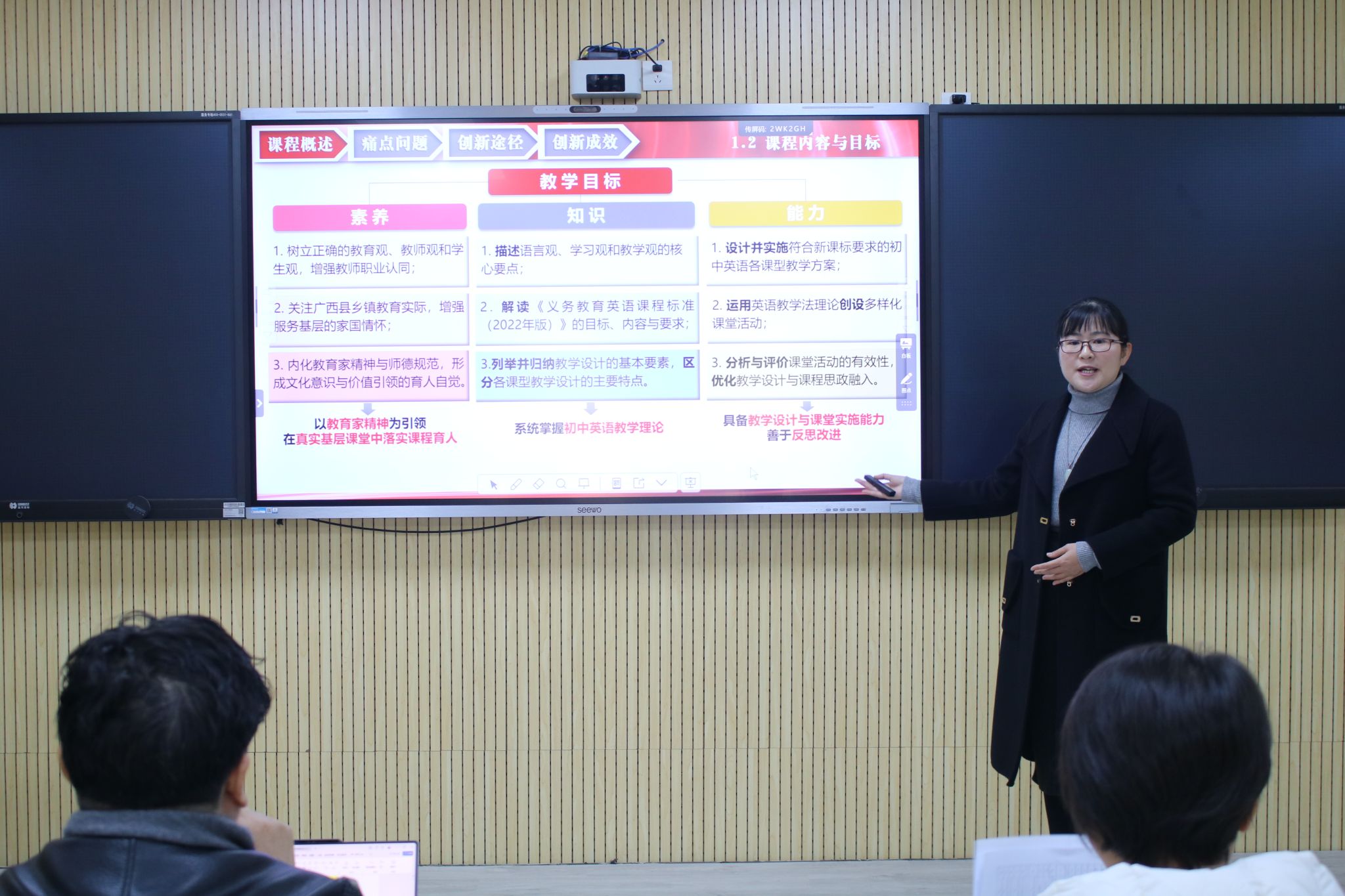 1月13日,学校在明科楼201智慧教室举行第六届教师教学创新大赛现场评审。覃雄彪副校长到评审现场指导工作。
