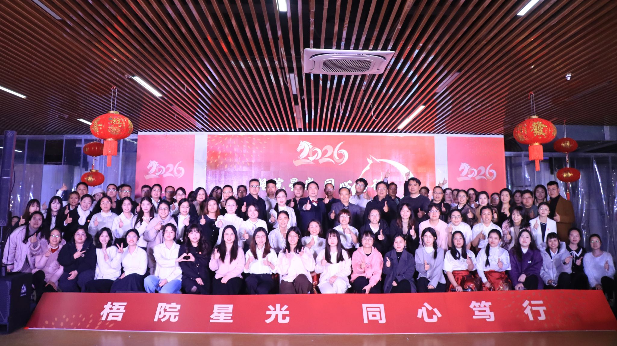 活动中还展示了宁波大学学工处赠送的新春对联,传递校际情谊。学员们表演了诗朗诵、合唱等节目,特邀对唱节目《如愿》引发大家共鸣。活动在全体合唱《不要慌太阳下山还有月光》的温暖氛围中圆满结束。