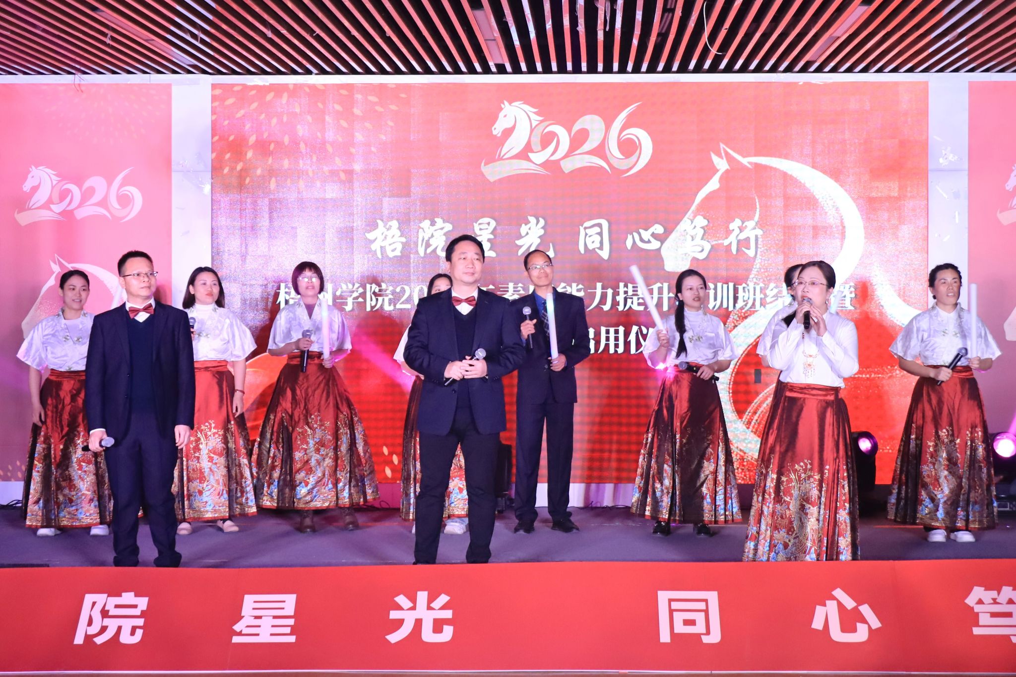 仪式在主题视频《我们》中拉开帷幕。梁业华副书记在致辞中对辅导员队伍的工作成效给予肯定,并勉励大家将培训所得转化为实际行动,继续用心用情、笃行实干。最后,副书记还向全体人员表达了诚挚的新春祝福。