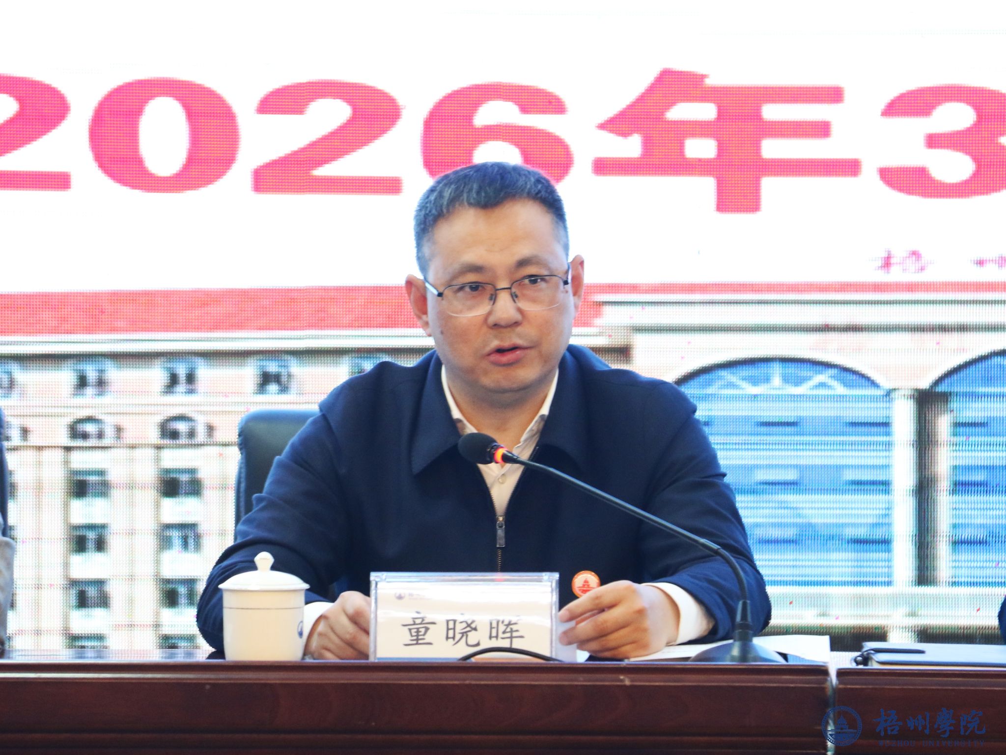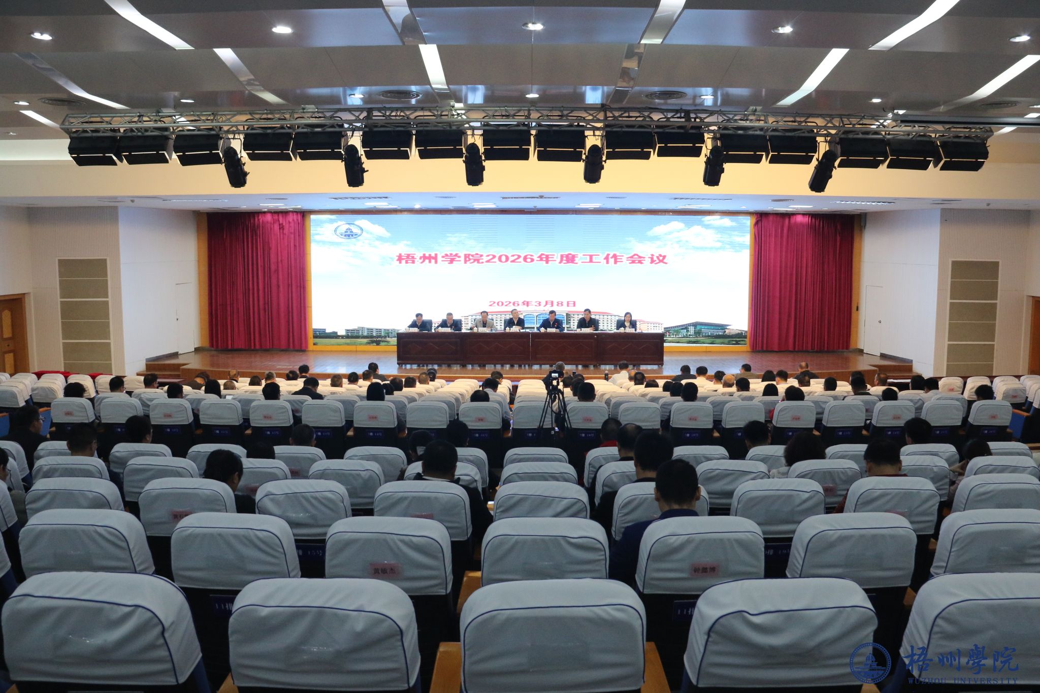 3月8日,学校在明理楼一楼学术报告厅召开梧州学院2026年度工作会议,学校领导童晓晖、麻新纯、梁业华、范生汝、覃雄彪、莫晨宇、叶昊出席会议,全体中层干部参加会议。会议由党委副书记梁业华主持。