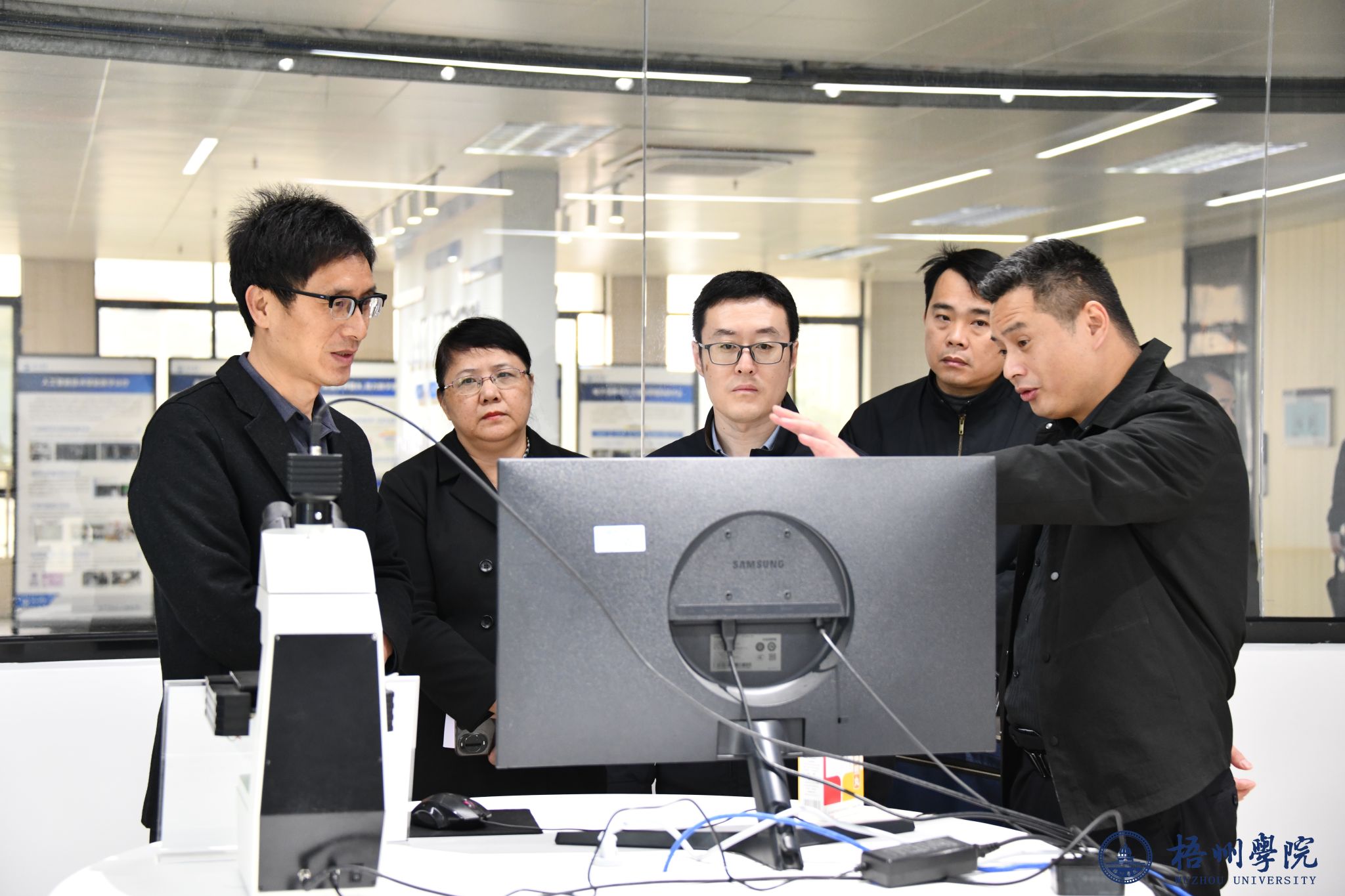 座谈结束后,张元良副厅长一行深入学校科研平台和特色场馆进行实地考察调研。先后走访了内河通航广西高校工程中心、广西机器视觉与智能控制重点实验室以及宝石文化博物馆,深入了解了学校在特色学科建设、科研平台运营管理、校园文化品牌培育以及产教融合实践等方面的情况。检查组对梧州学院立足地方特色资源,打造特色办学品牌的思路与实践成效表示认可。