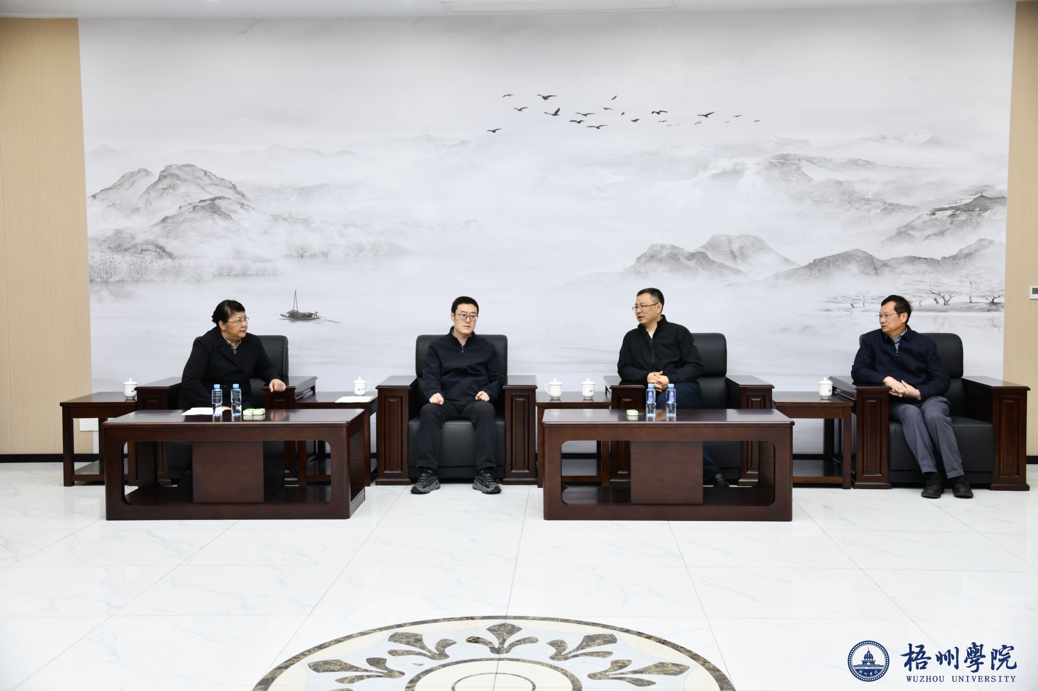张元良副厅长听取工作汇报后,对梧州学院近年来立足地方、深耕内涵、特色发展所取得的显著成绩给予了充分肯定。他特别关注学校硕士点申报工作,详细询问了申报准备、学科建设等方面的具体情况,并结合自身科研工作经历与教育管理经验,对学校申硕工作提出了富有针对性和建设性的指导意见。张元良勉励学校要更加自觉地将发展融入地方发展大局,进一步凝练办学特色,突出学科优势,紧密对接区域经济社会发展和产业需求,持续深化产教融合与校地协同,切实把申硕工作的过程转化为全面提升办学综合实力、增强服务地方高质量发展能力的过程,更好地履行地方高校的责任与使命。