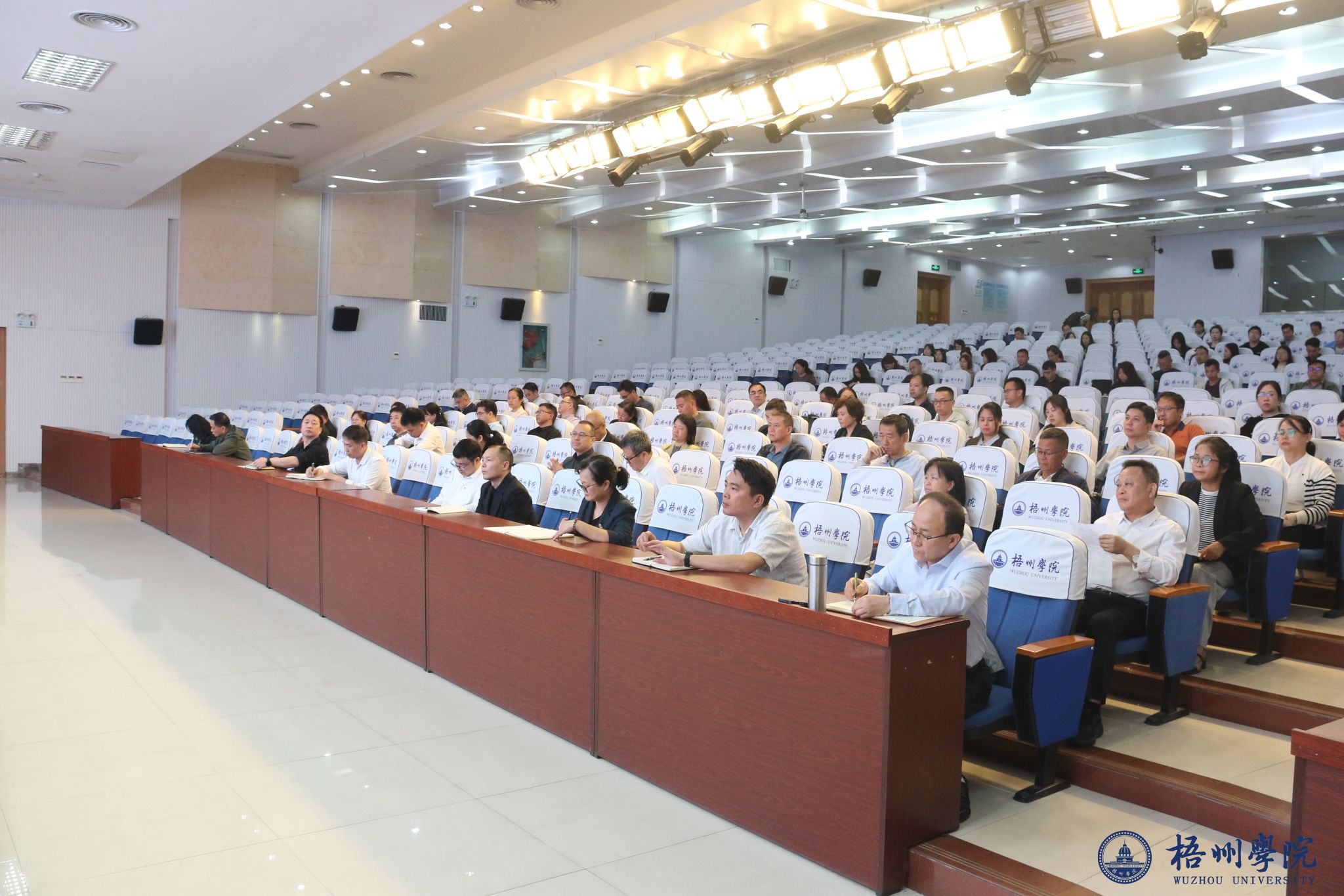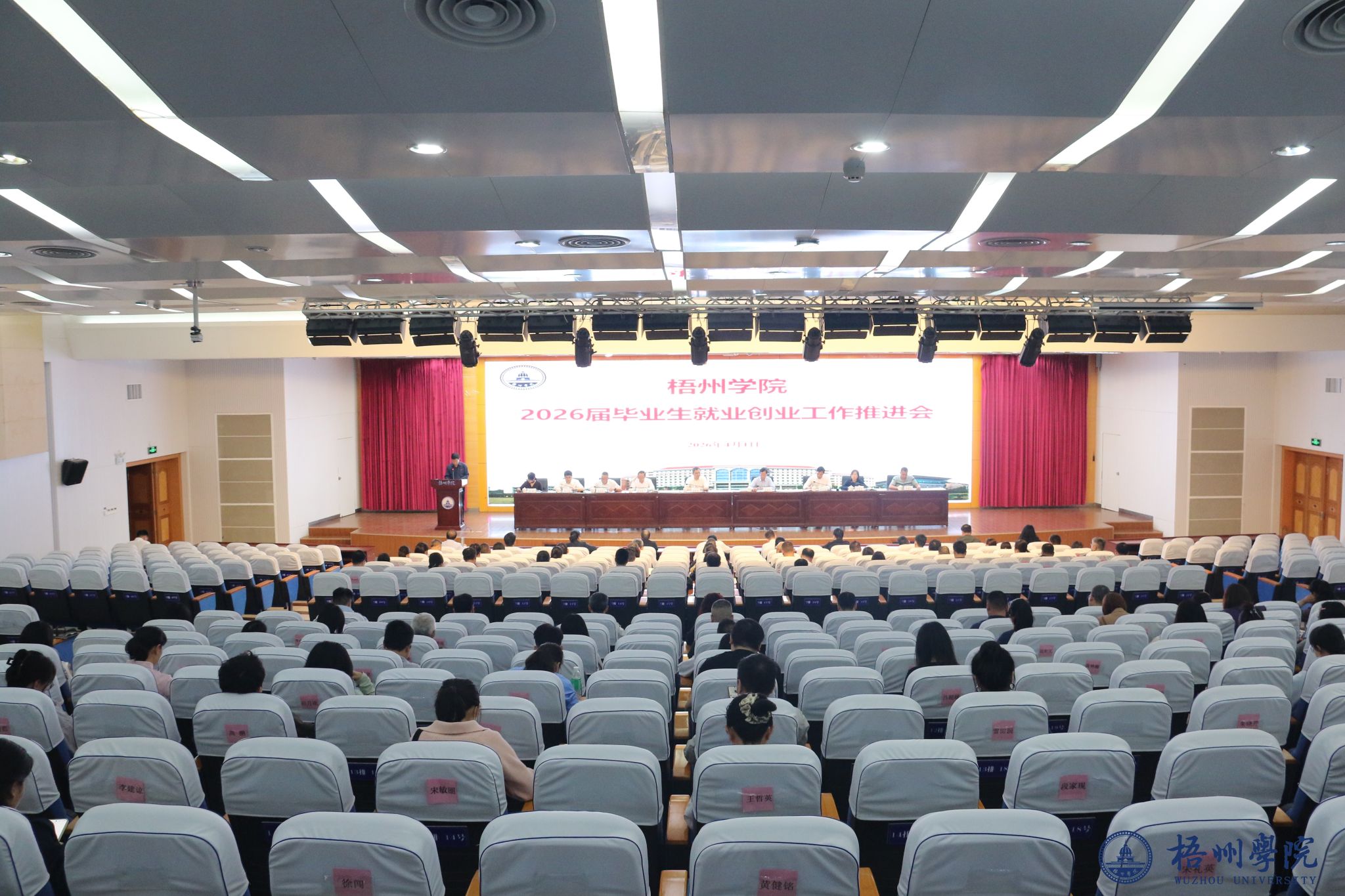 4月1日,学校在明理楼一楼学术报告厅召开2026届毕业生就业创业工作推进会。学校领导童晓晖、麻新纯、梁业华、范生汝、覃雄彪、莫晨宇、邓小林出席会议,各行政部门主要负责人,各二级学院领导班子、专业教研室负责人、就业指导老师,全体辅导员、毕业班班主任及学生工作部(处)全体人员参加会议。会议由副校长覃雄彪主持。