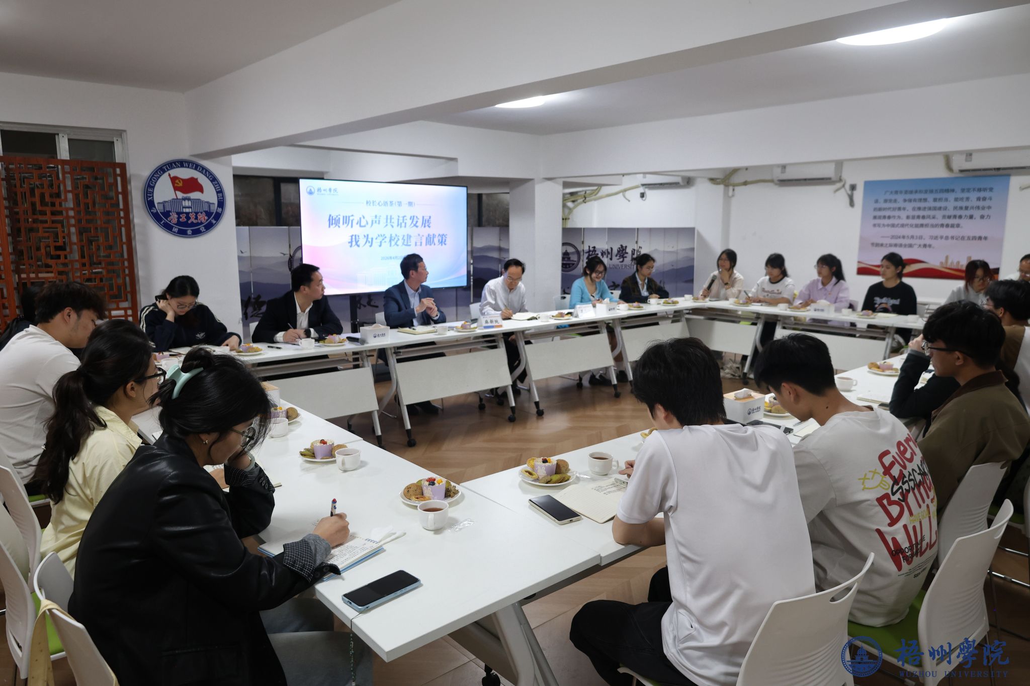 为进一步搭建师生高效沟通桥梁,倾听学生真实心声,精准助力学生成长成才,4月2日下午,学校在一站式学生社区A6一楼明理讲堂成功举办“校长心语茶”第一期活动。本期活动以“倾听心声·共话发展——我为学校建言献策”为主题,学校校长麻新纯、党委副书记梁业华出席活动,学生工作部(处)负责人及各二级学院学生代表齐聚一堂,围坐畅谈,共话校园生活点滴,共商成长发展大计。活动由党委副书记梁业华主持。