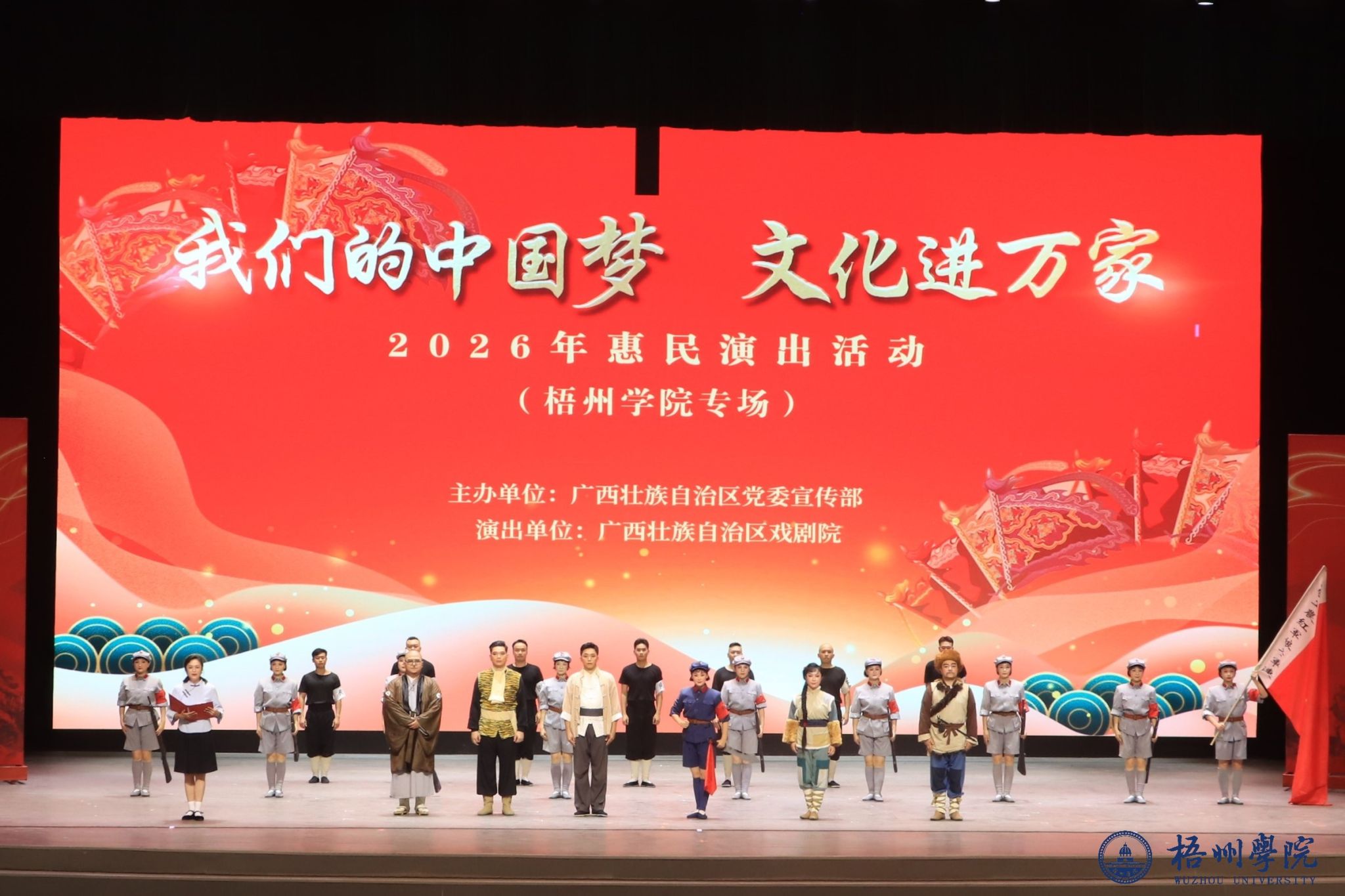 为传承红色基因,厚植爱国情怀,丰富校园文化生活,4月15日,由广西戏剧院、梧州学院主办,广西戏剧院京剧团、梧州学院党委宣传部、学生工作部(处)、校团委承办的2026年“我们的中国梦——文化进万家”惠民演出——革命题材京剧《红色经典》专场在学校体育馆三楼上演。