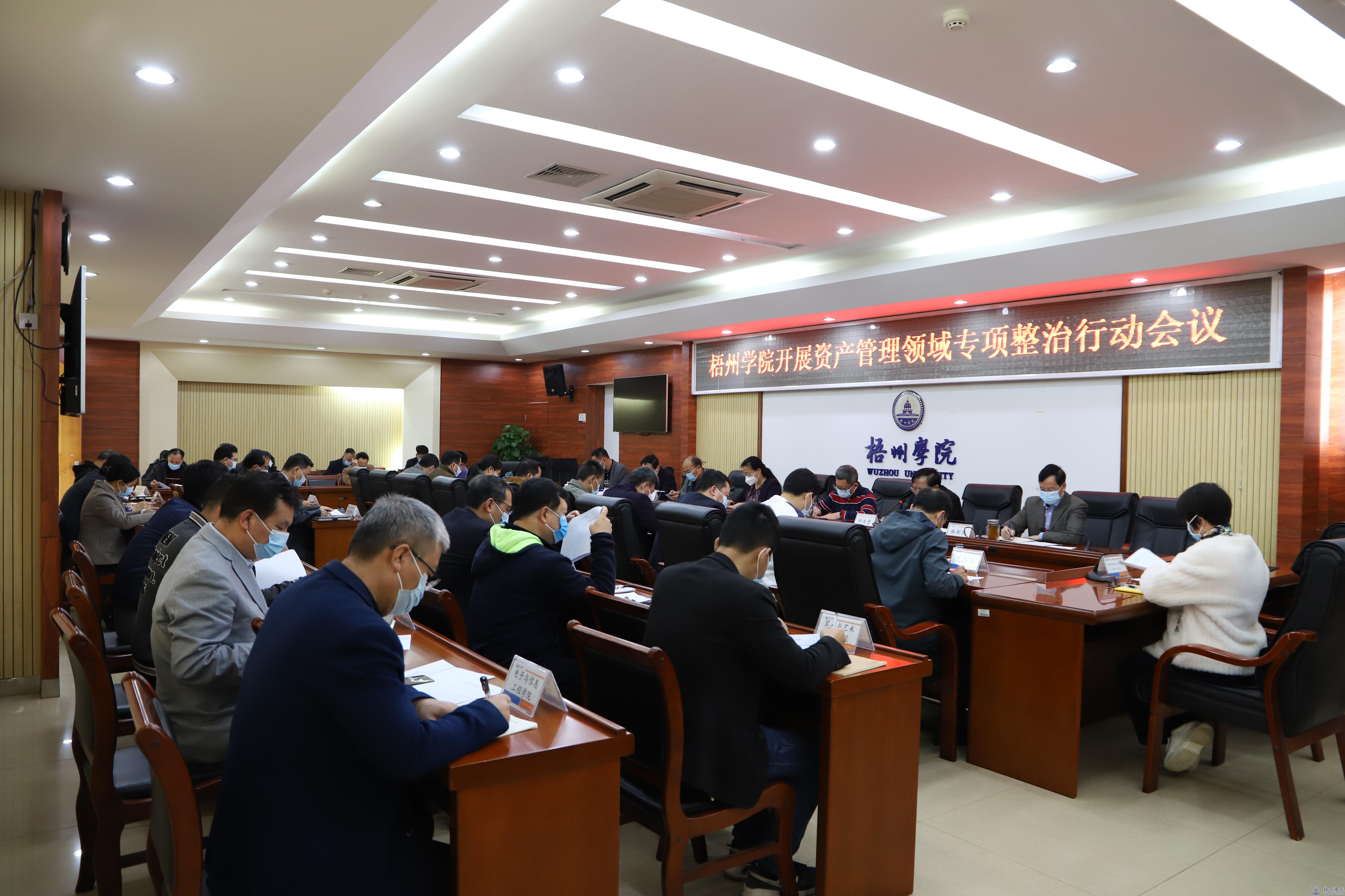 会上,邱房贵传达了《广西壮族自治区教育厅关于印发< 自治区教育厅所属预算单位资产管理领域专项整治行动实施方案>的通知》精神。国有资产管理处对《梧州学院开展资产管理领域专项整治行动实施方案》作说明。