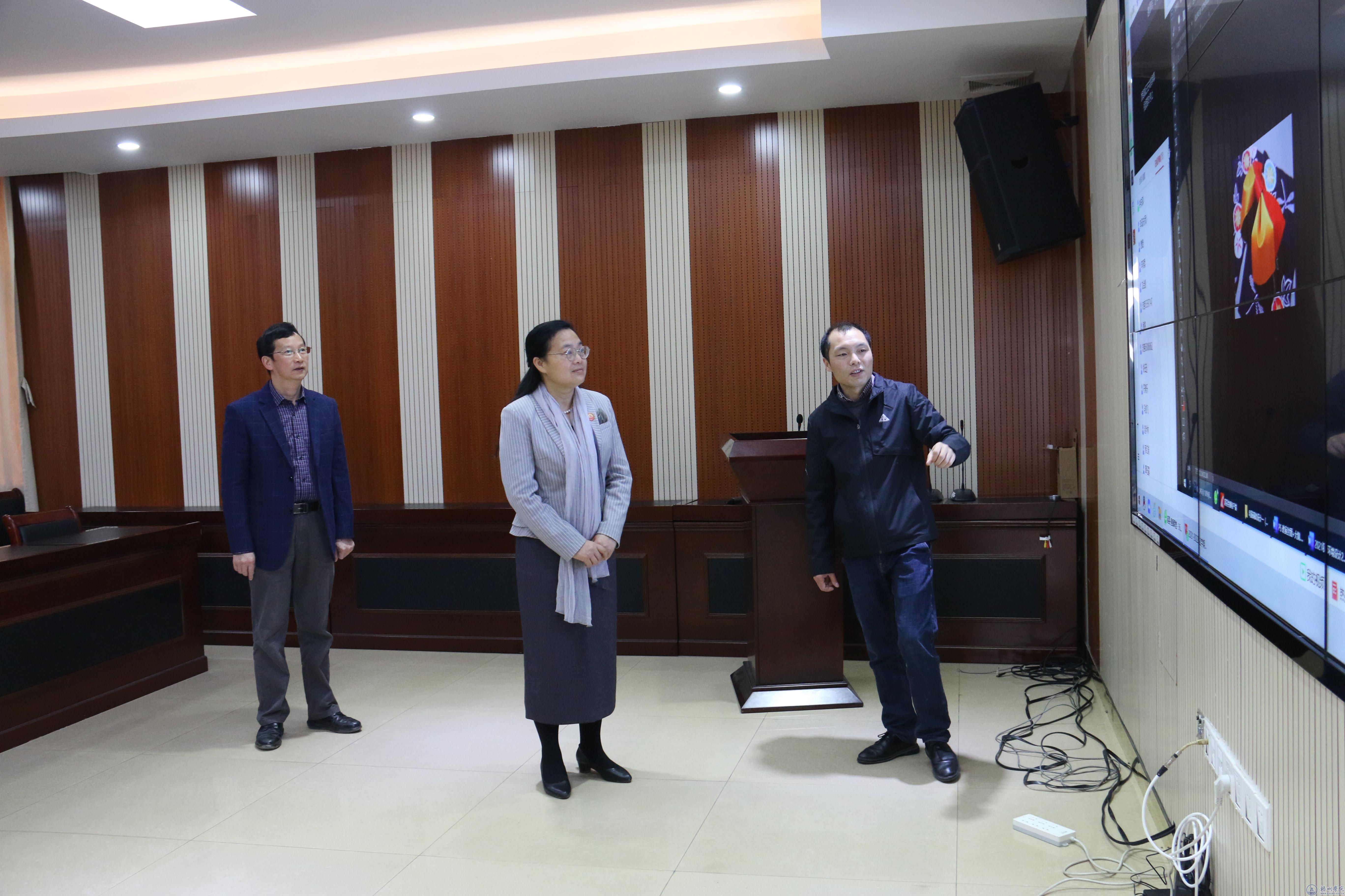 按照自治区教育厅关于疫情防控的相关要求,根据《梧州学院2022年春季学期开学及疫情防控工作方案》的相关规定,2022年春季学期开学第一周返校学生在宿舍健康观测,全校开展线上教学。为了解各二级学院和相关部门的准备情况,掌握任课教师在线教学的开展情况,特别是教师的授课质量和学生学习成效,学校党委书记韦仕珍、校长杨奔、副校长麻新纯3月1日和2日到学校明理楼七楼视频会议室,通过教学大数据监管平台,对学校在线课程的开设情况、相关部门的准备与服务情况、师生准备情况、过程监管情况以及三级质量保障体系的运行情况作了检查。