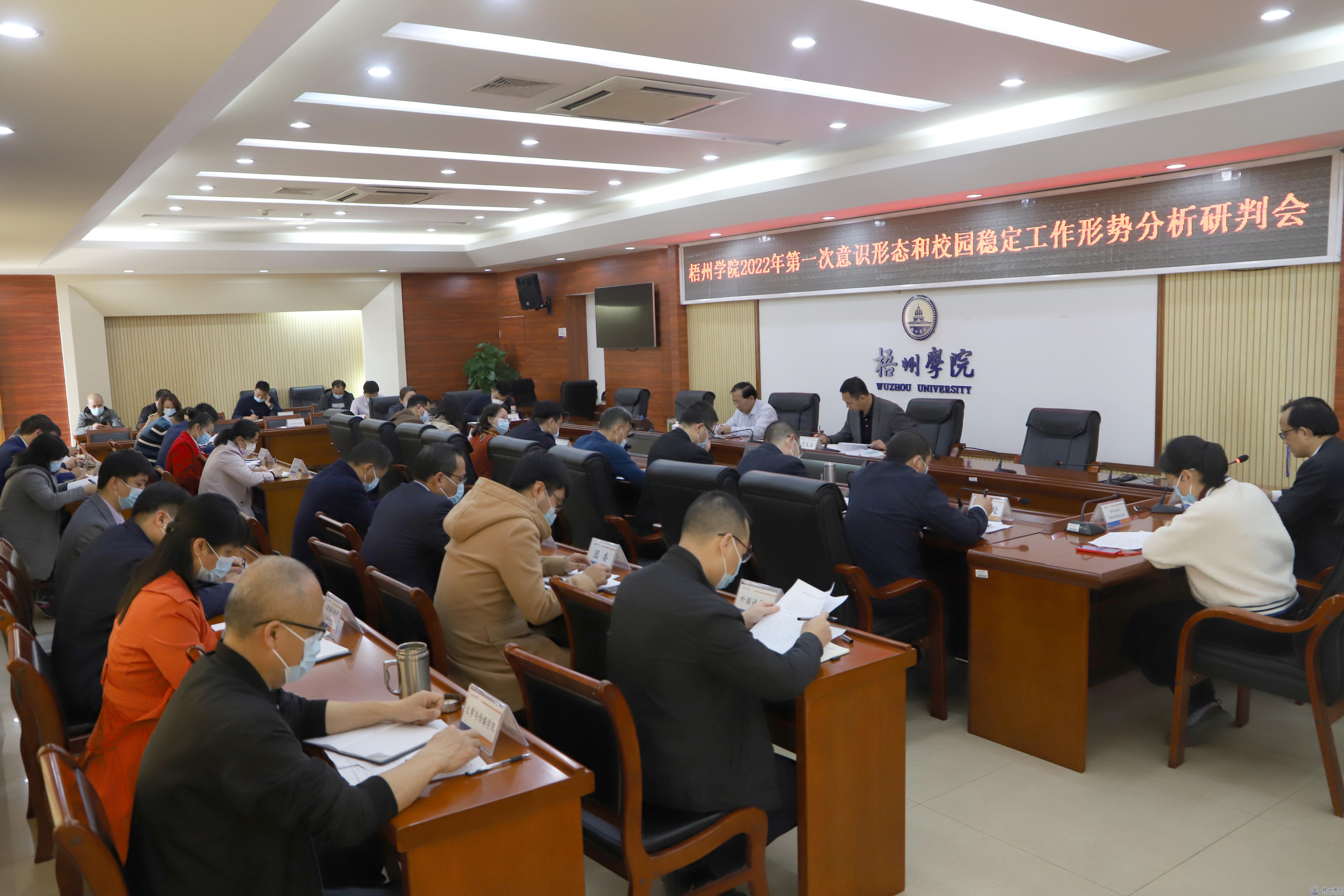 3月4日上午,学校在明理楼八楼会议室召开2022年第一次意识形态和校园稳定工作形势分析研判会。副校长邱房贵主持会议并讲话,副校长范生汝出席会议并讲话。各职能部门、教辅单位、群团组织主要负责人,各二级党组织书记参加会议。