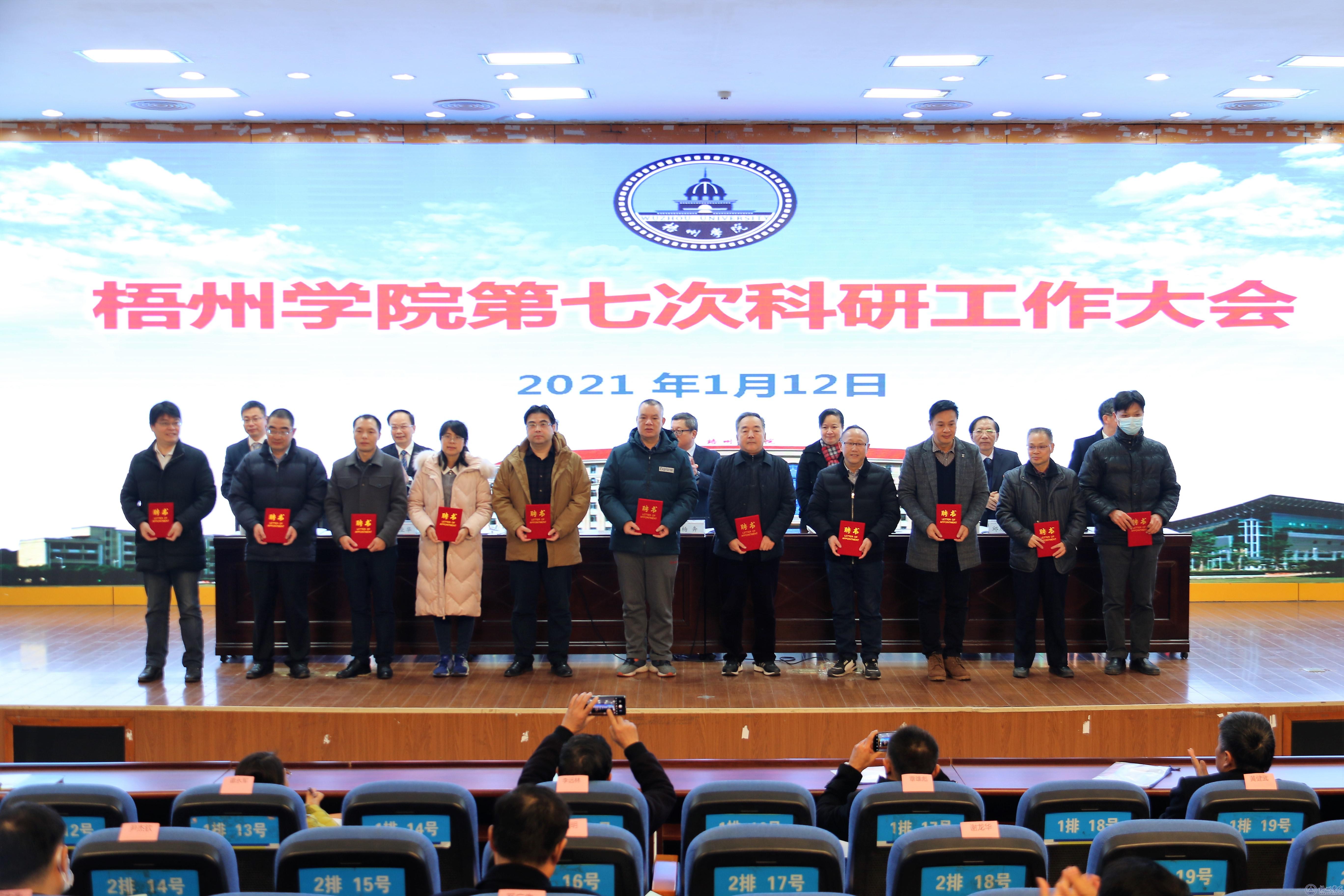 1月12日上午,梧州学院在明理楼学术报告厅召开第七次科研工作大会。副校长宾月景作了题为《开拓创新 攻坚克难 不断开创科研工作新局面 为建设特色鲜明的应用型高水平大学而努力奋斗》的工作报告。副校长麻新纯宣读科研工作表彰决定,副校长邱房贵宣读梧州学院学报编委会成员和审稿专家名单。校长杨奔发表题为《强化使命担当,深化体制改革,谱写“十四五”科研工作新篇章》的讲话。学校领导为科研工作先进集体和个人颁奖,并为学报编委会成员和审稿专家代表颁发聘书。(2021年1月13日官网发布) 02 我校一流本科专业和课程建设取得新突破