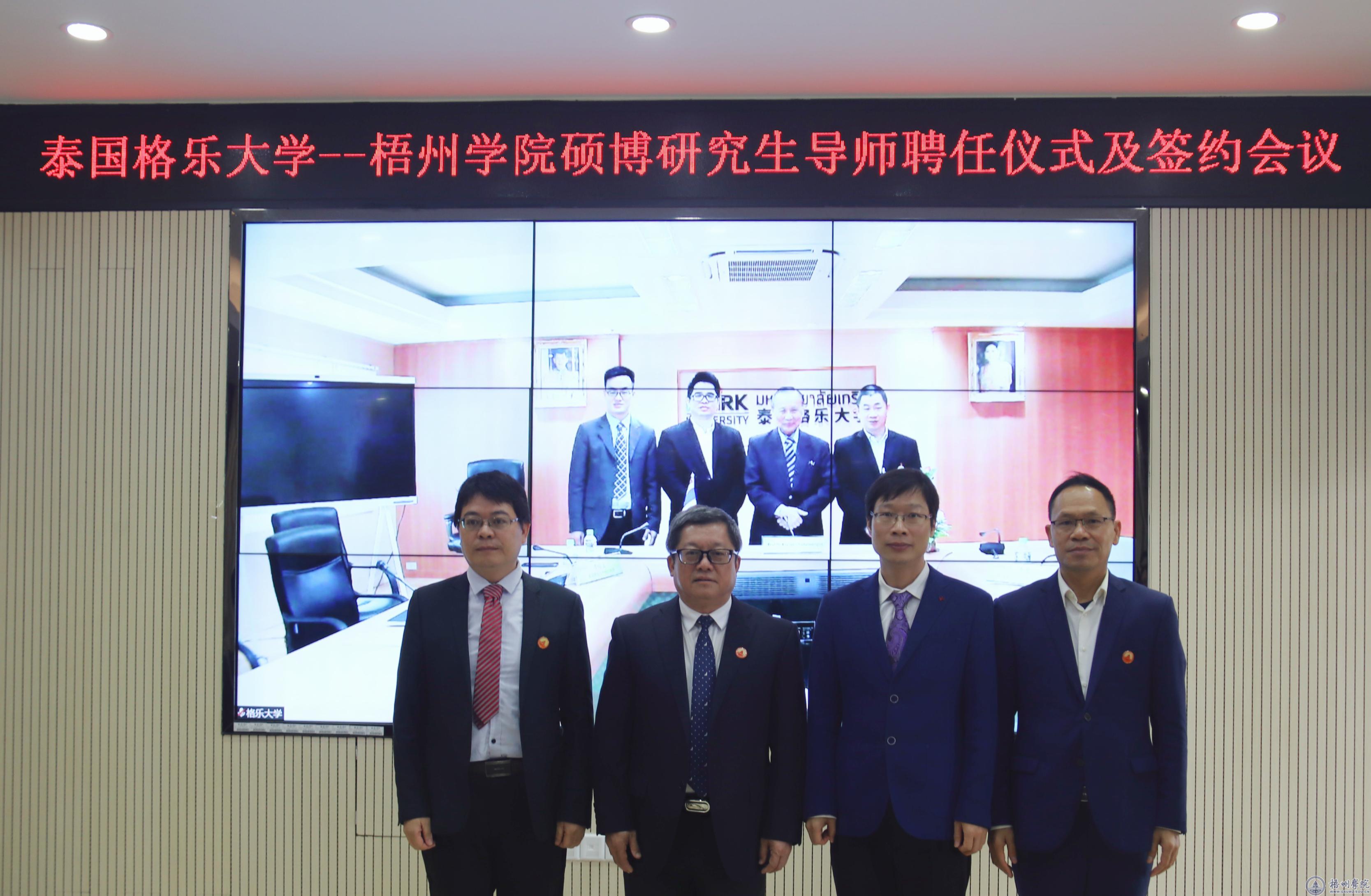 11月30日上午,我校与泰国格乐大学以视频会议形式举行硕/博导师聘任仪式及签约仪式,聘任仪式分别在我校和泰国格乐大学设立会场。我校教师王建军、梁文光、谢友中、张贤富受聘为格乐大学硕士/博士研究生导师。会上,两校签署协议,明确今后将开展本科、硕士、博士阶段联合培养项目,以及各类长、短期交流学习项目,把两校的交流合作落到实处。(2021年12月1日官网发布) |