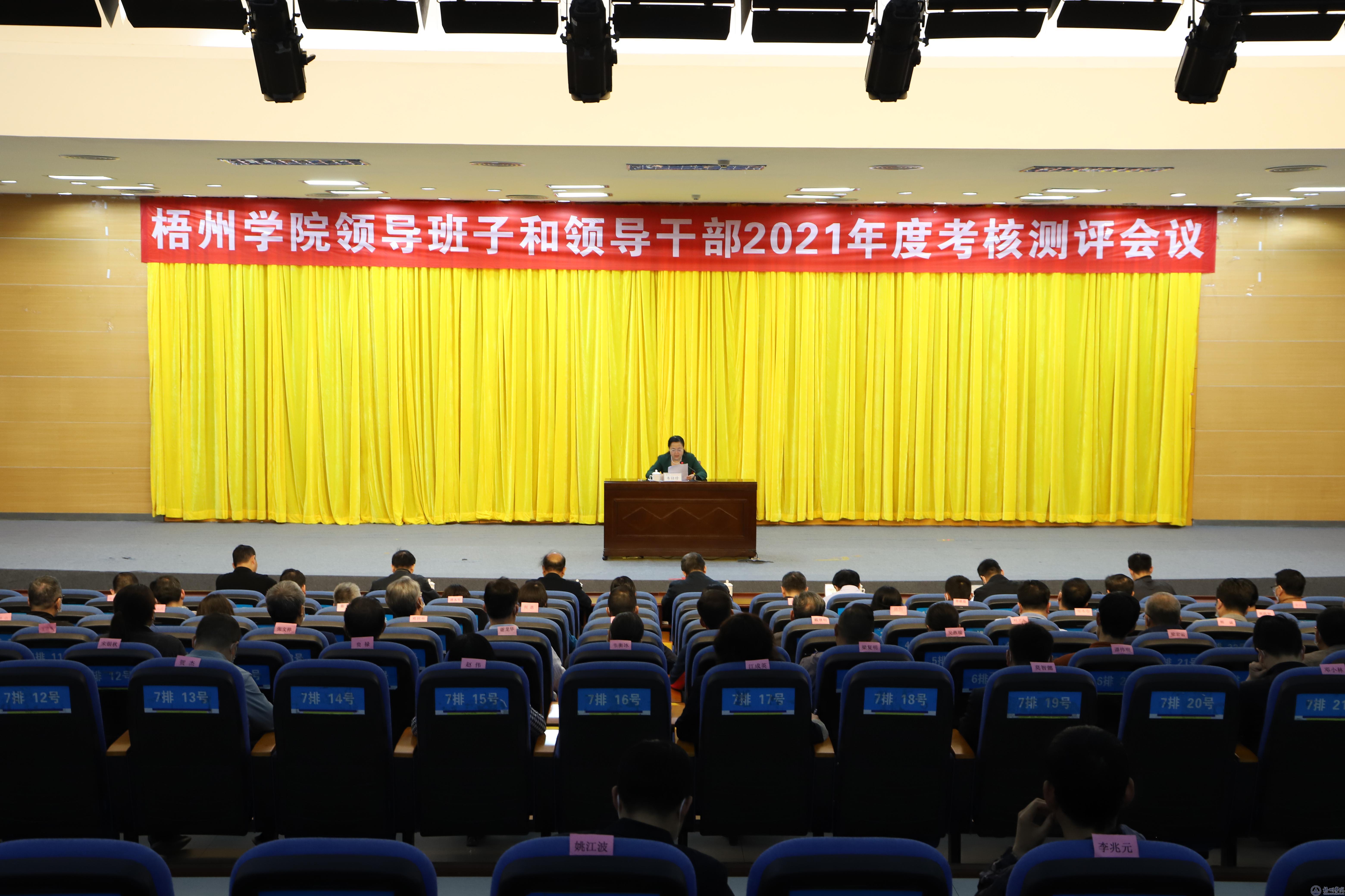3月11日上午,我校在明理楼学术报告厅召开学校领导班子和领导干部2021年度考核测评会议。校领导班子成员、中层正职领导干部、正高级职称代表参加会议。自治区党委组织部委派梧州市委组织部干部一科科长齐晓军到会指导工作。