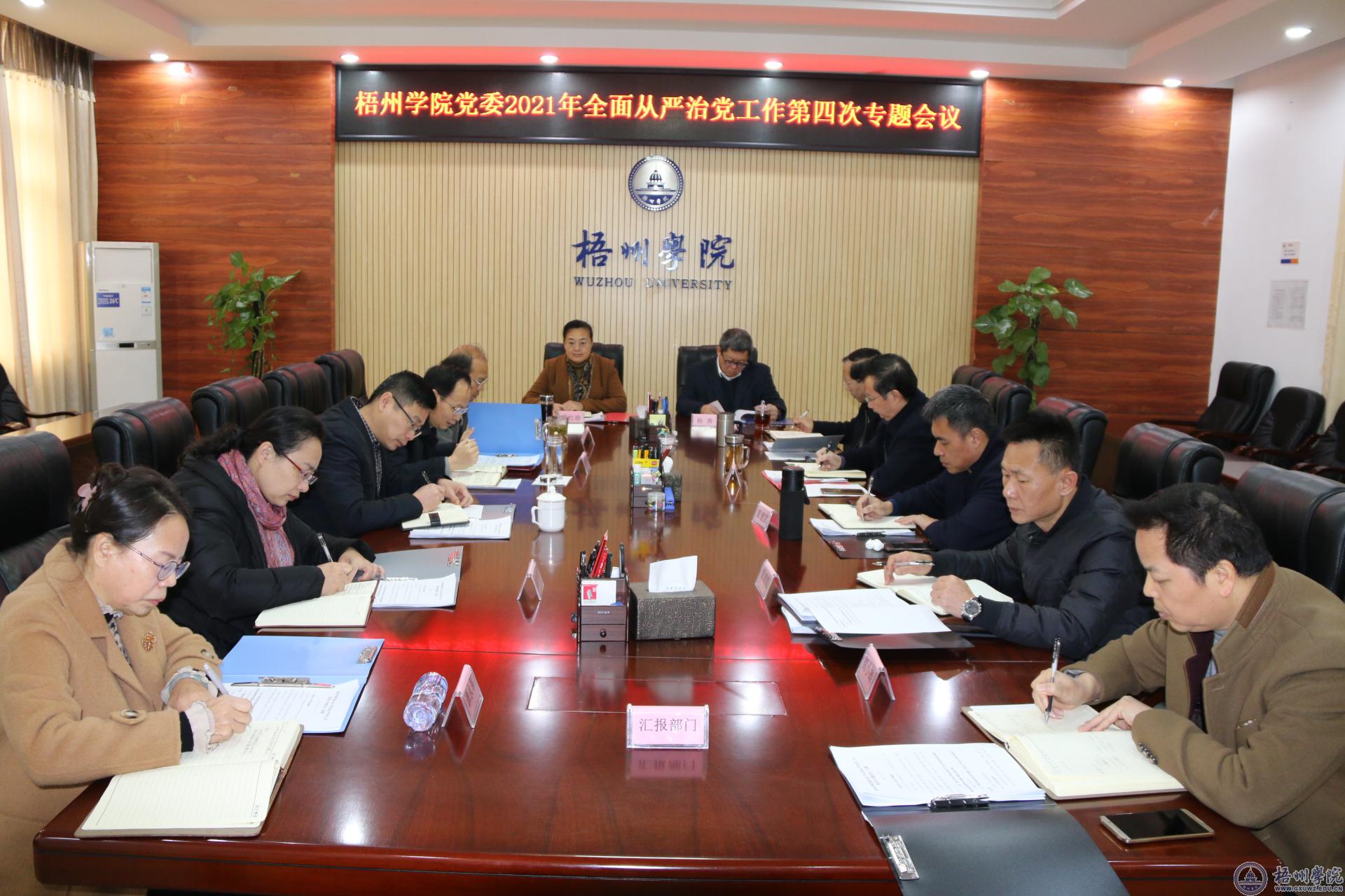1月14日,学校党委常委会召开2021年全面从严治党工作第四次专题会议,专题研究学校党风廉政建设工作。会议由学校党委书记韦仕珍主持。