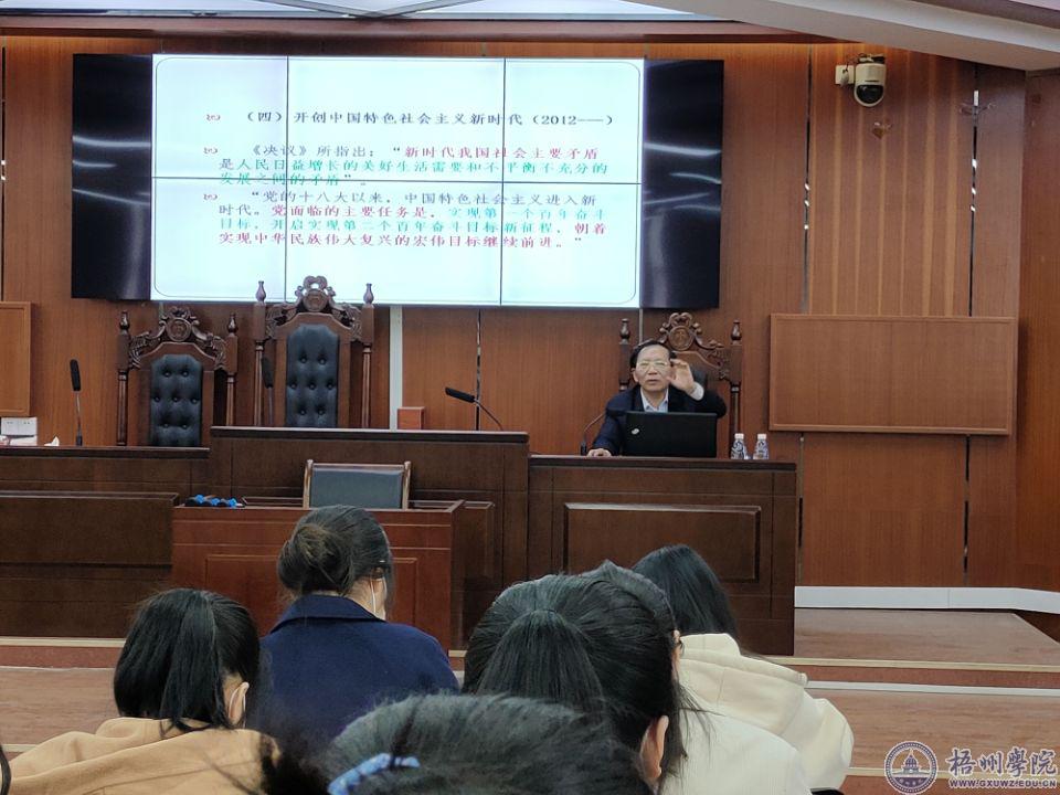 12月15日下午,学校副校长邱房贵在明理楼N603教室为法学院、管理学院的学生党员作学习党的十九届六中全会精神专题宣讲。