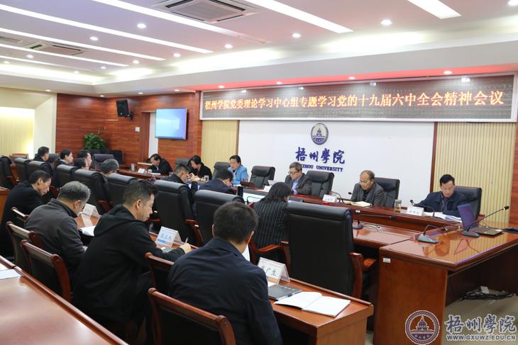 12月1日下午,学校党委理论学习中心组召开党史学习教育第四次专题学习暨2021年第六次学习会,专题学习贯彻党的十九届六中全会精神。学校党委书记韦仕珍主持会议,校领导杨奔、曹迎、玉振明、邱房贵、麻新纯和其他中心组成员参加集中学习会。