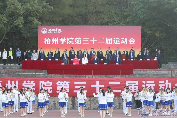 学校党委书记韦仕珍宣布:“梧州学院第三十二届运动会开幕!”