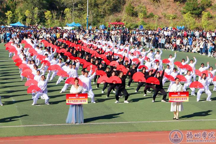 12月3日上午,学校第32届校运会开幕式在北校区田径场举行。开幕式后,太极功夫扇团体赛正式展开。