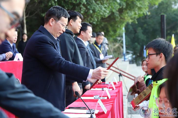 甘阳宣布运动会各项目比赛成绩。在学生组球类比赛中,获得篮球项目学生男子组、女子组第一名的分别是大数据与软件工程学院、法学院;获得排球项目男子组、女子组第一名的分别是管理学院、电子与信息工程学院;获得足球项目男子组、女子组第一名的分别是机械与资源工程学院、大数据与软件工程学院;获得气排球、乒乓球混合团体赛第一名的均为机械与资源工程学院 ;获得羽毛球、网球混合团体赛第一名的均为大数据与软件工程学院;获得台球混合团体赛第一名的是电子与信息工程学院;获得太极扇比赛一等奖的是教师教育学院、外国语学院;获得开幕式入场式表演一等奖的是教师教育学院、文学与传媒学院;获得体育道德风尚奖第一名的是文学与传媒学院;获得田径比赛团体总分第一名的是机械与资源工程学院;获得运动会团体总分第一名的是大数据与软件工程学院。